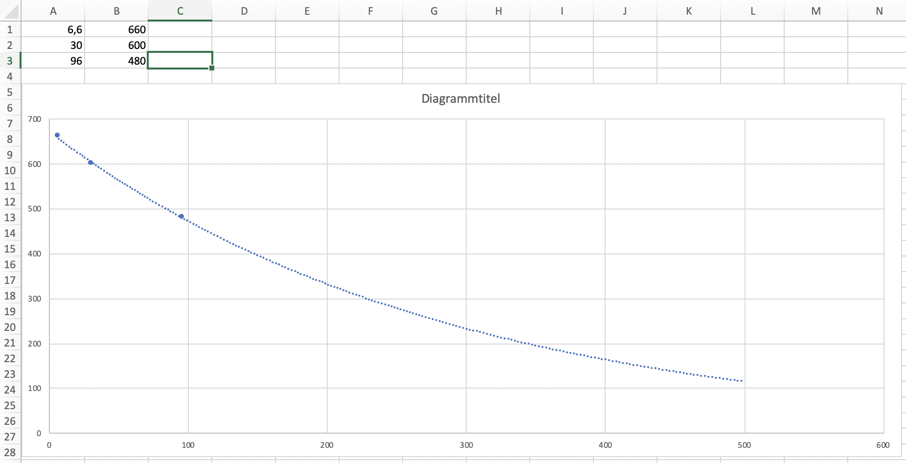 Also erst Mal sind 0,75 Stunden nur 45 Minuten und - insofern muss ich auch MEroller widersprechen - kann man das bei Belastung so nicht rechnen. Du hast das Thema ja schon mit der Einsicht begonnen, dass die Kapazität mit steigender Leistung sinkt. Wenn Du Dir den weiteren Verlauf der Kurve nicht so recht vorstellen kannst, kannst Du Dir z.B. in Excel eine Trendlinie zeichnen lassen. Das sieht dann so aus: