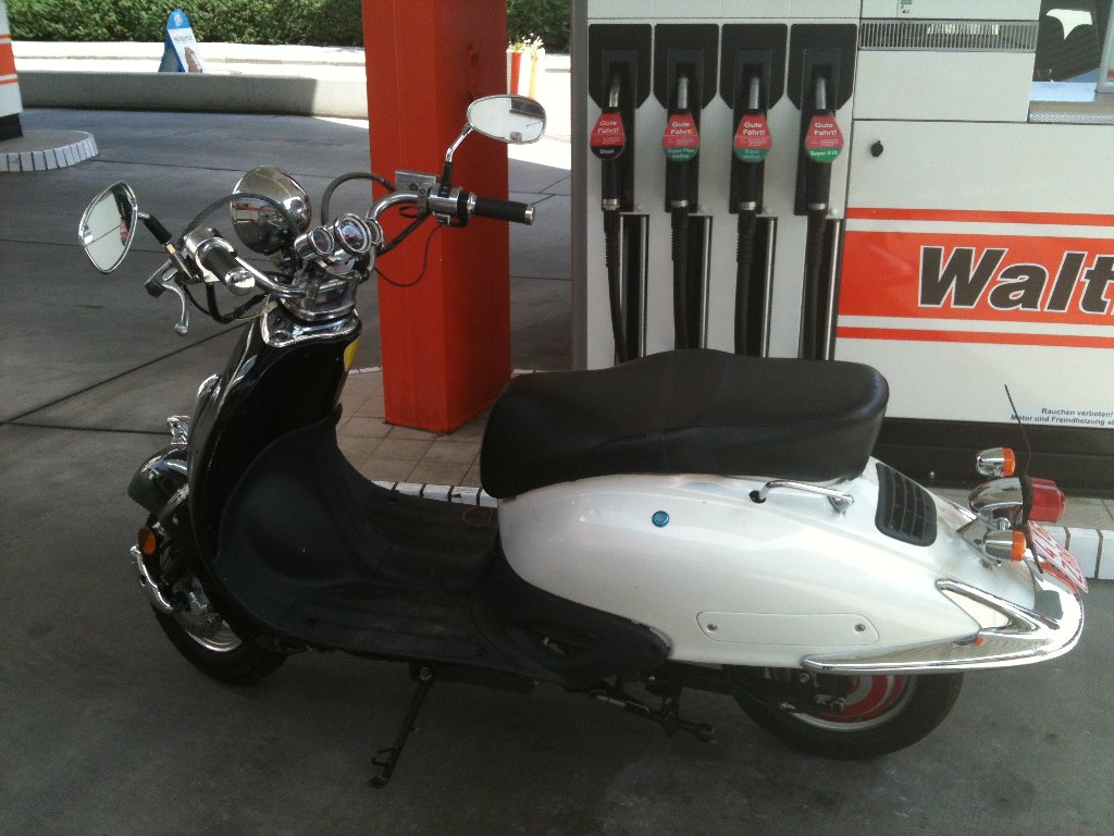 Der Roller hat mal in der Bucht incl. Fracht 300-400 Euronen gekostet.