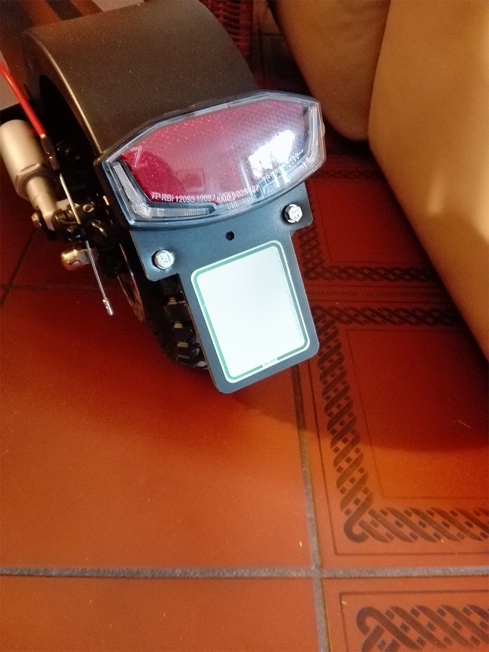 ich hatte nun das neue, verstärkte Schutzblech eingebaut und zunächst die mitgelieferten weißen Dichtungen verwendet. Diese sind beidseitig klebend, so dass man nur sehr schwer wieder an den Elektrokasten rankommt, weil alles übel verklebt ist. Auch müsste man wieder neu dichten danach, weil man zwangsläufig das weiße Tape zerreißt.