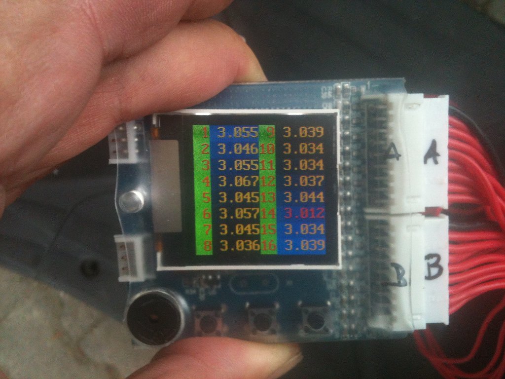 Das Umstecken der PQ-Stecker geht recht flott. Der Monitor zeigt dann auch in rot die schlechteste Zelle an.