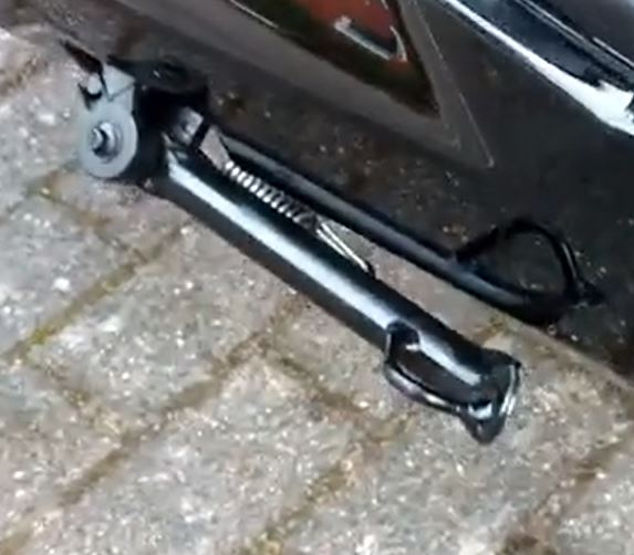 Da ist das Blech, das den Taster für den Seitenständer betätigt. Das muss etwas zurückgebogen werden, sonst wird der Taster der Anschlag.