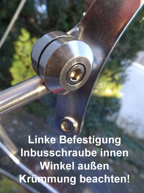 Die Befestigungswinkel müssen außen auf die Gelenke der Abstandshalter geschraubt werden, d.h. Schraubenkopf nach innen.