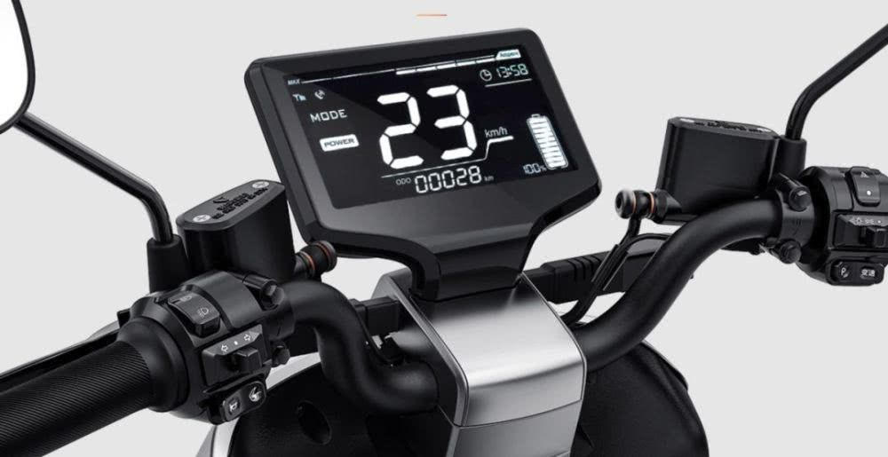 Was sofort ins Auge sticht, das große Staufach mit 26 Liter, 7Zoll Display, Seiten und Hauptständer.