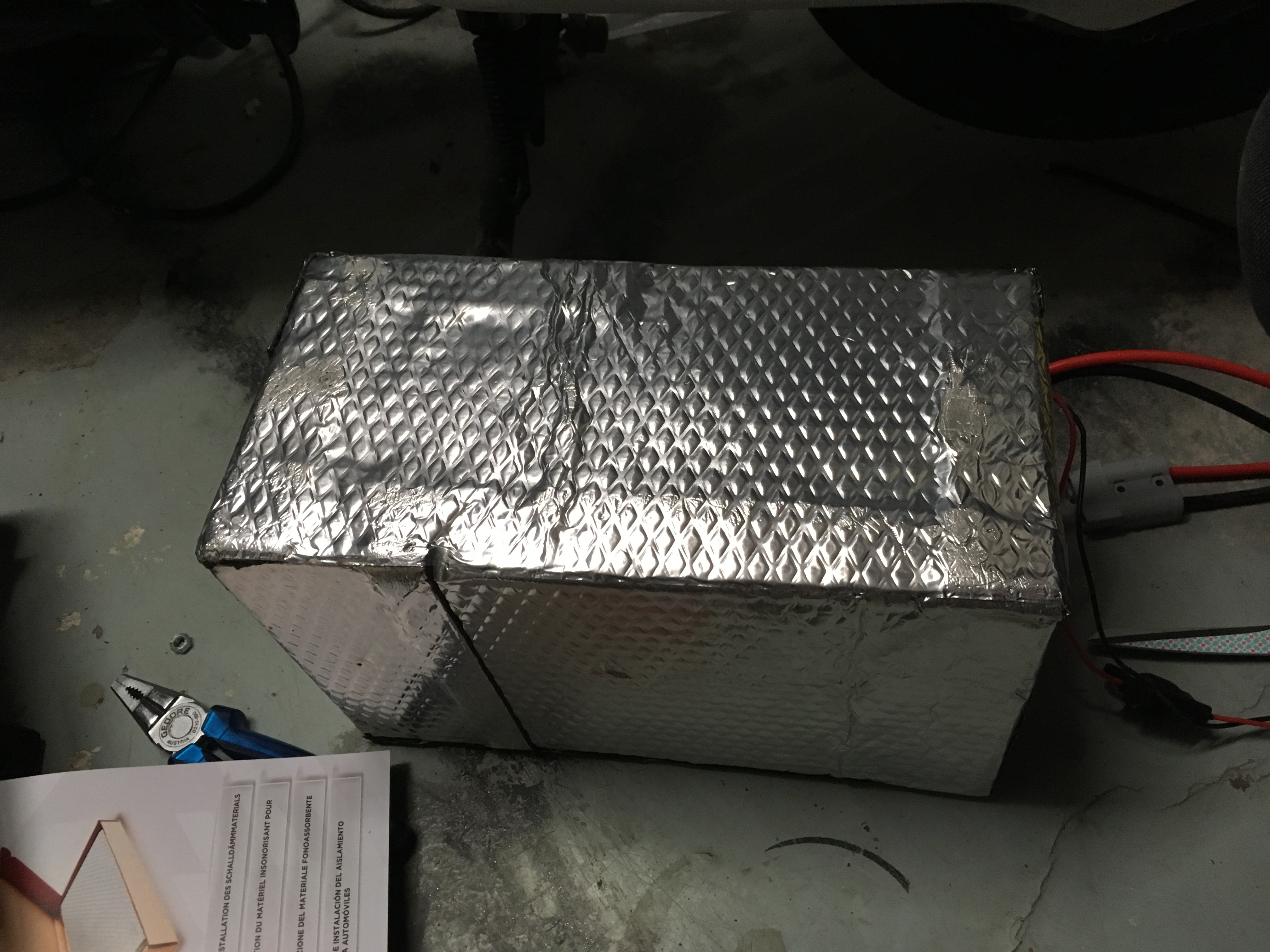Somit lässt sich das Gewicht auch bestätigen - ca zwei AGM Batterien habe ich geschätzt (20S4P=80 Zellen bei á 140g = 11,2kg + BMS und Isolierung)