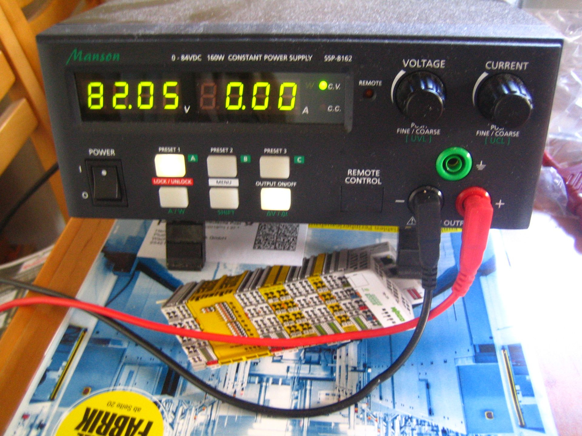 Das LG hat 72V (87,6) 10A und 5 Potentiometer sowie ein Kfz. Relais mit 12V Spule und einem 80V?? Arbeitskontakt (Schließer) im Ausgang. Ziel war es, die Ladeschlußspannung auf 24 * 3,45V abzusenken,