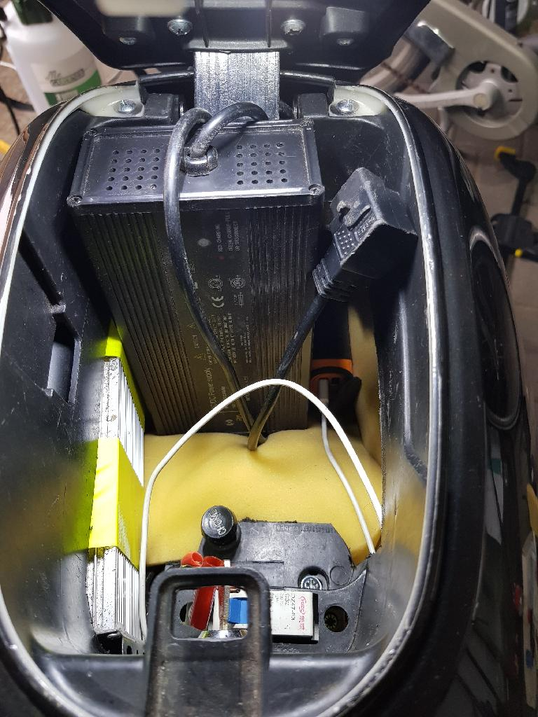 die kabel der steuerung sind unter dem schaumstoff in einer kleinen tupperdose