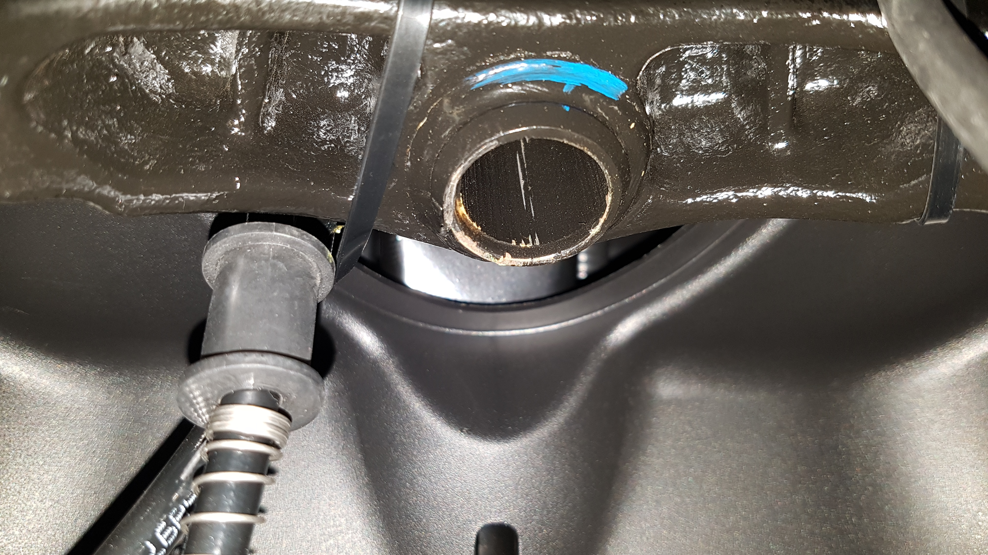 Ich habe bei der Gelegenheit dran gedacht, bei mir auch mal zu kontrollieren, wie denn die Federvorspannung eingestellt ist. War auf geringster Vorspannung, kein Wunder dass die Kiste mit zwei Personen so eierig fuhr. Jetzt habe ich die Vorspannung auf die mittlere von fünf Stufen eingestellt.