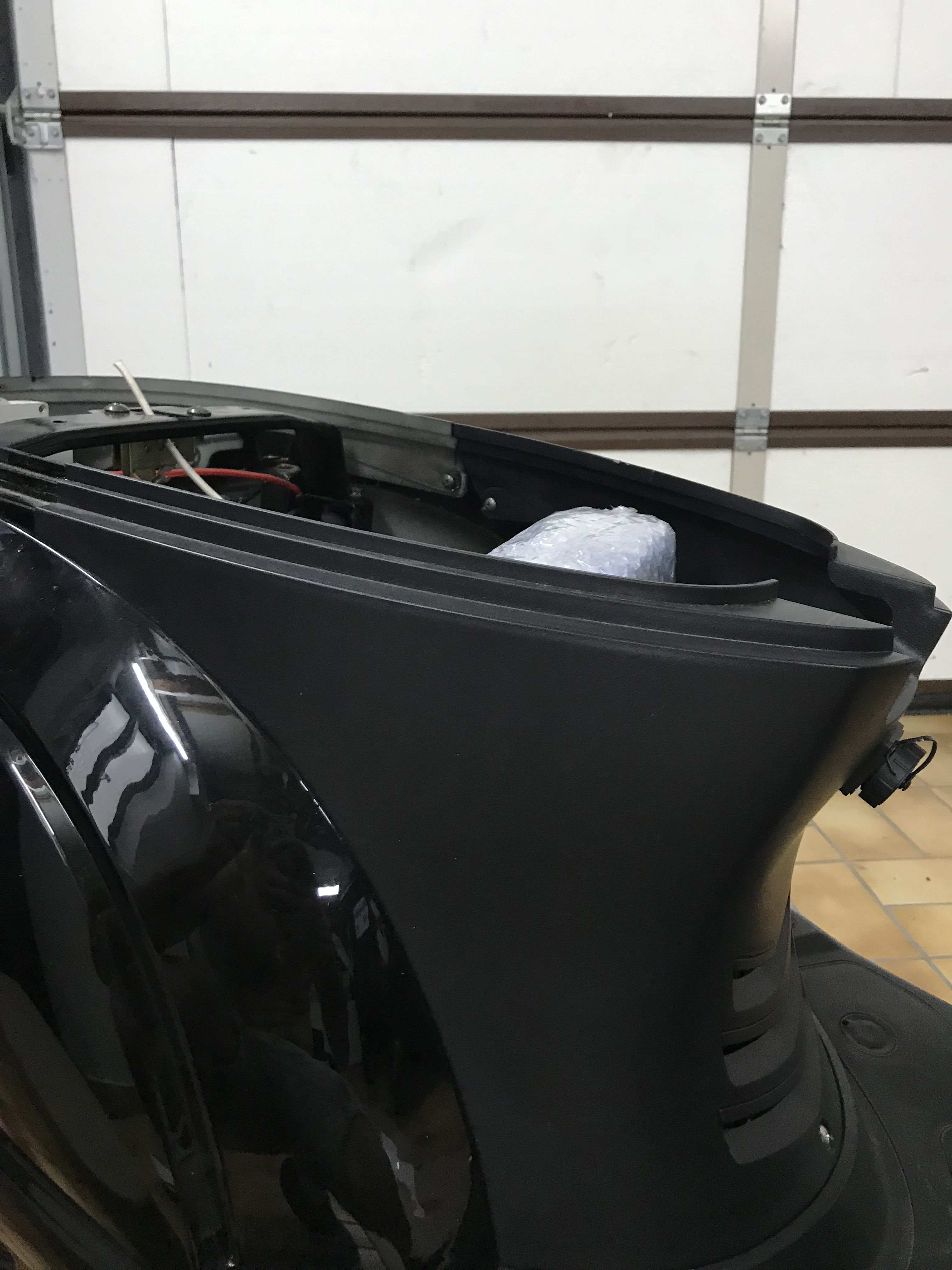Wollte ihn einfach senkrecht in die alte Akkuwanne bauen und im Helmfach den Ausschnitt anpassen und dann sind die Kabel und Amschluss passend oben im Fach.