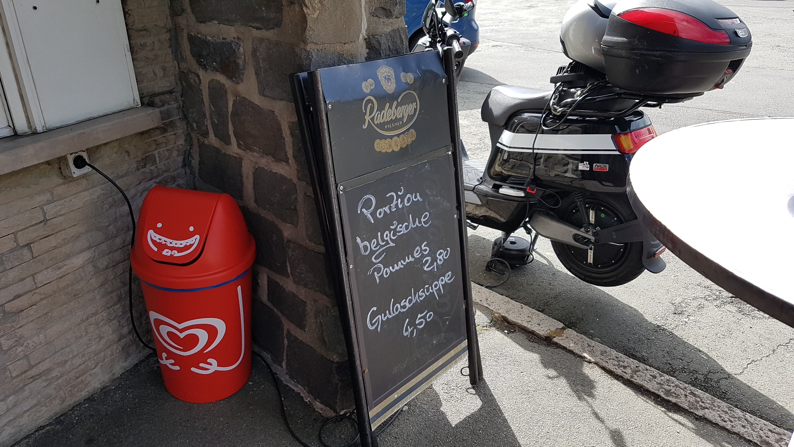 Um ca. 15h alles für die Abfahrt vorbereitet. Ca. die Hälfte der Motorradfahrer schaute mir dabei zu. War ja auch direckt neben der Bestell und Ausgabe. War übrigens der einzigste mit E-Antrieb ( auch die Autos, alle samt Verbrenner ) und dazu noch mit kleinem Kennzeichen. Von denen hat keiner gedacht das ich aus Hannover komme.