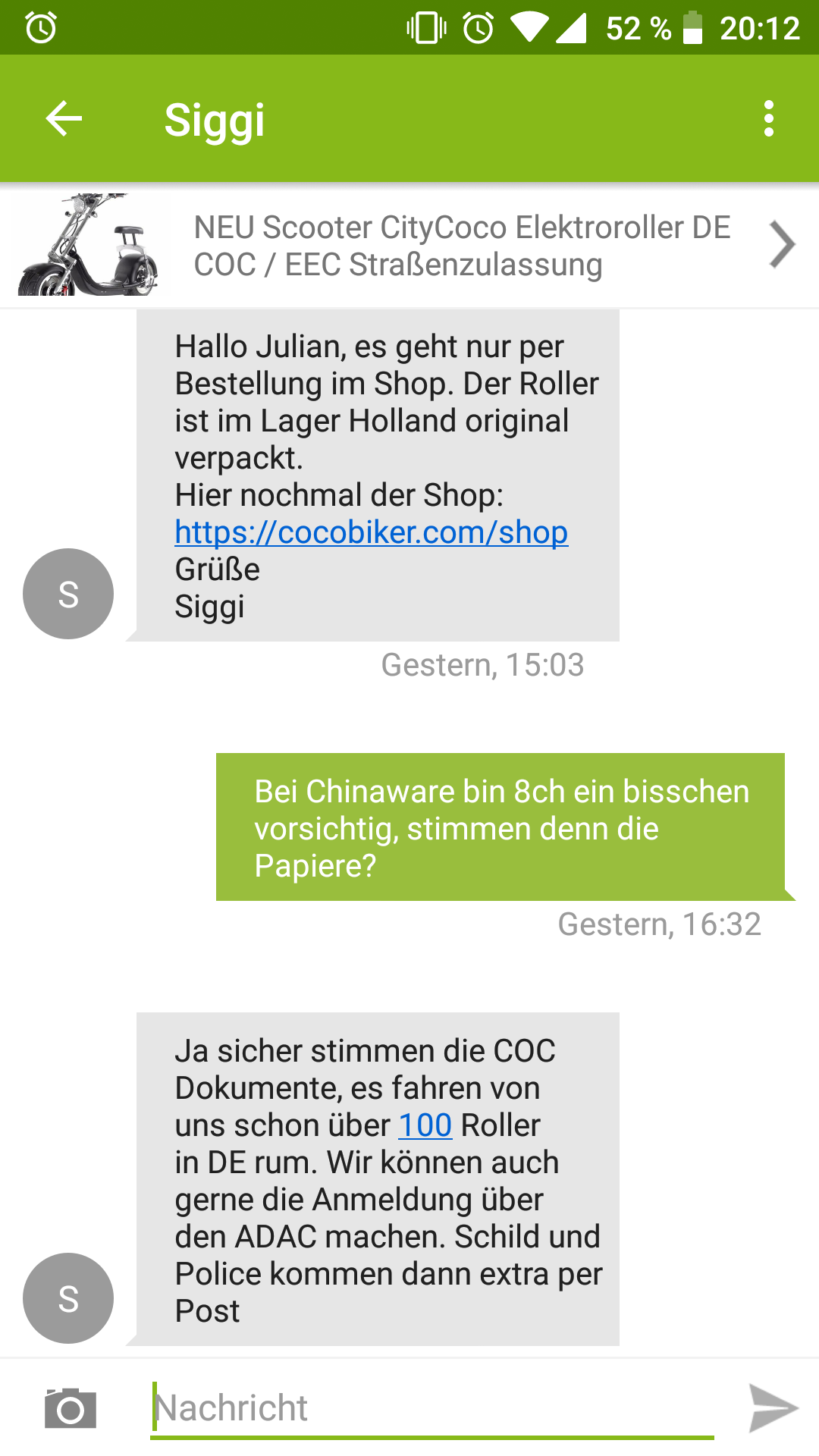 Also ein reiner Onlineshop... Habe gefragt wo ich einen Citycoco mal anschauen könnte...