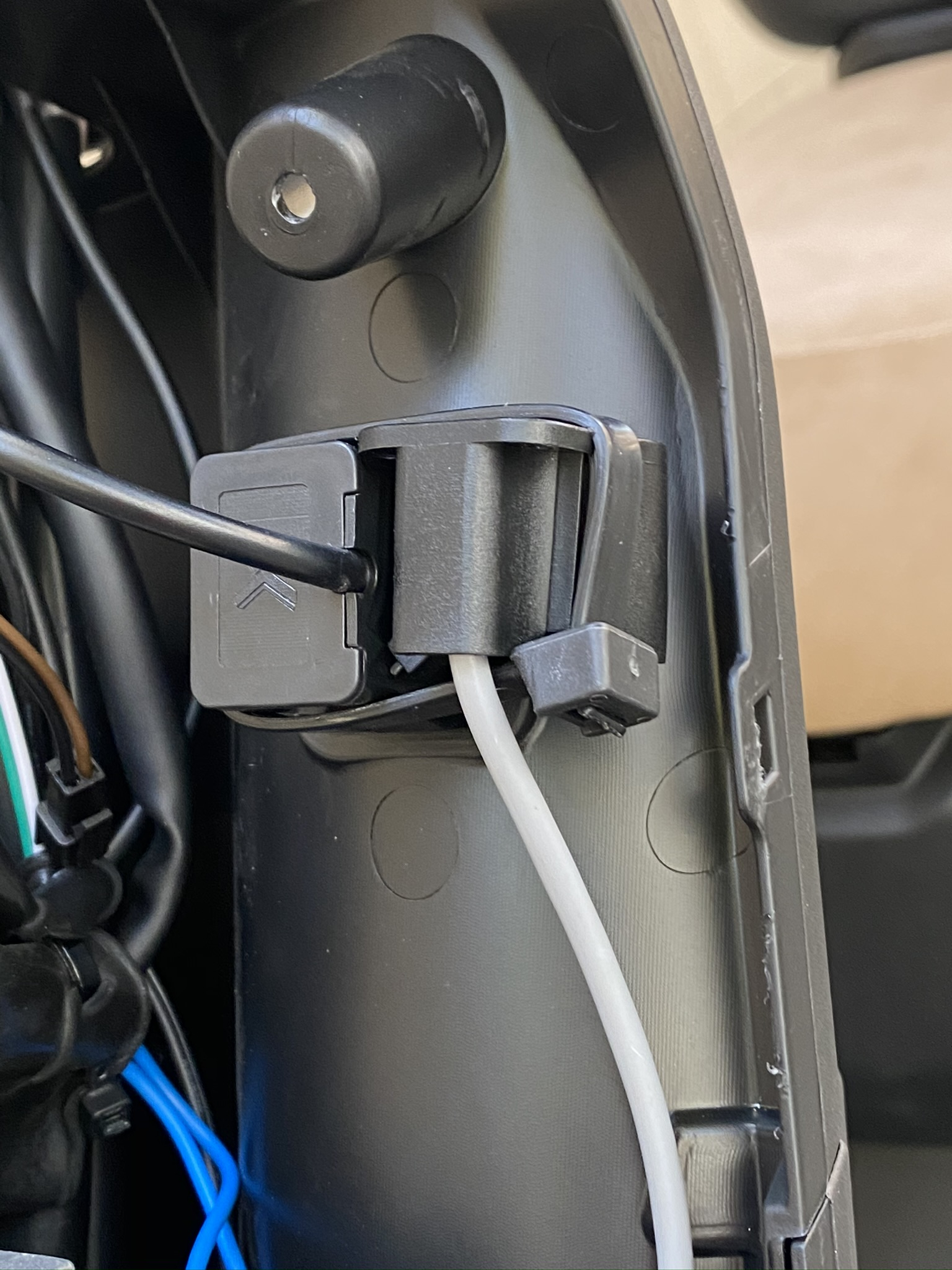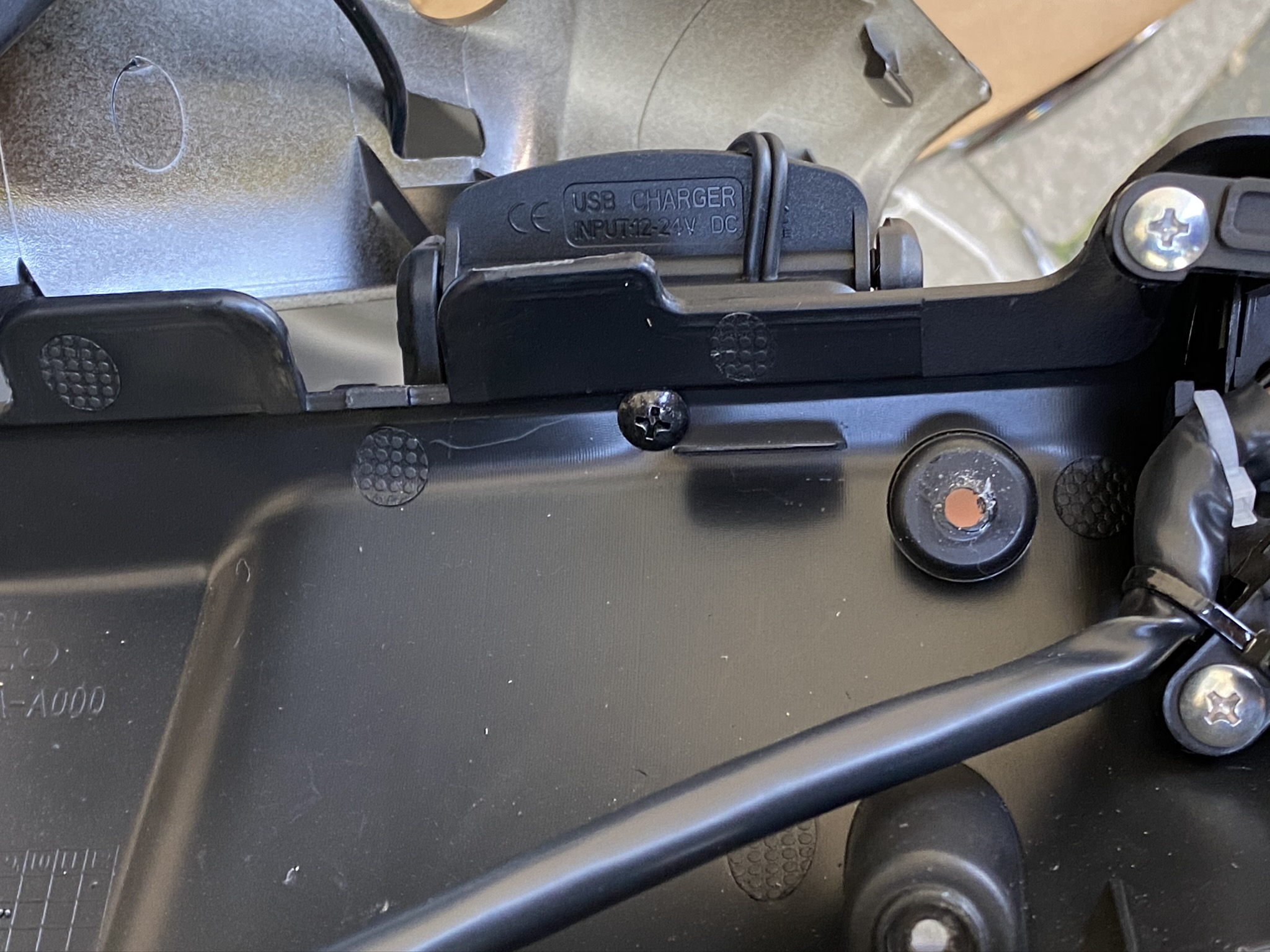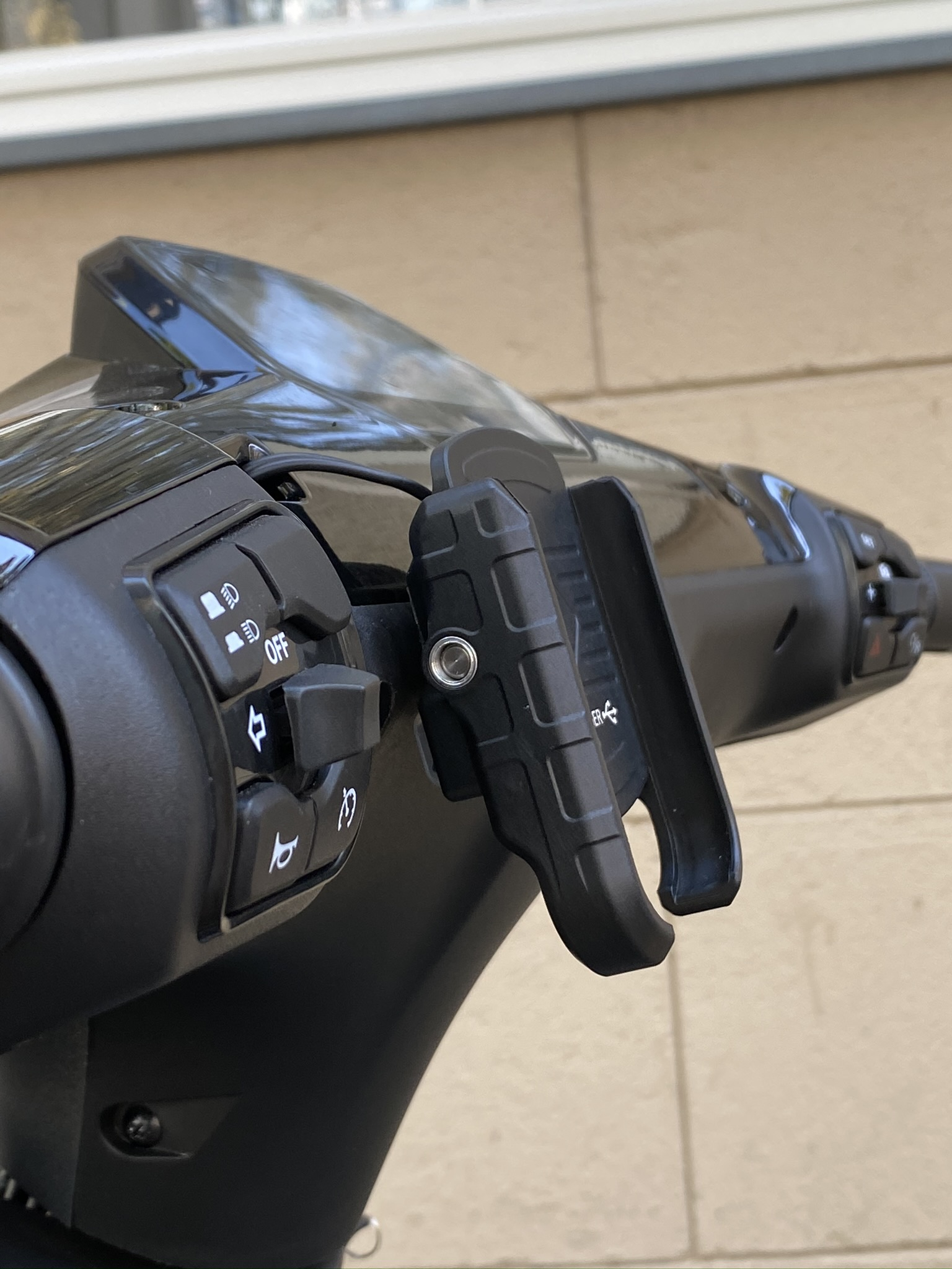 der untere Teil der Halterung welcher als Klemmschelle um ein Lenkerrohr passt lässt sich vom Hauptteil abschrauben. Man muss ein kleines (4mm) Loch in die Verkleidung des Rollers bohren. Durch dieses habe ich den Handyhalter dann festgeschraubt. Es ist die schwarze Kreuz-Schraube auf dem zweiten Bild. Zudem wurde zwischen Verkleidung und Handyhalterung ein kleines Stück Spiegel-Montageband geklebt. Wahrscheinlich keine ideale, für mich aber eine ausreichend gute Lösung.
