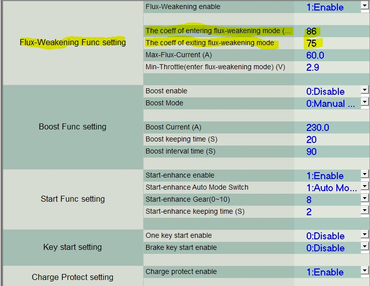 Ich dachte dass nur der Wert bei - Min-Throttle enter flux - Einfluss auf den Beginn der Feldschwächung hat.