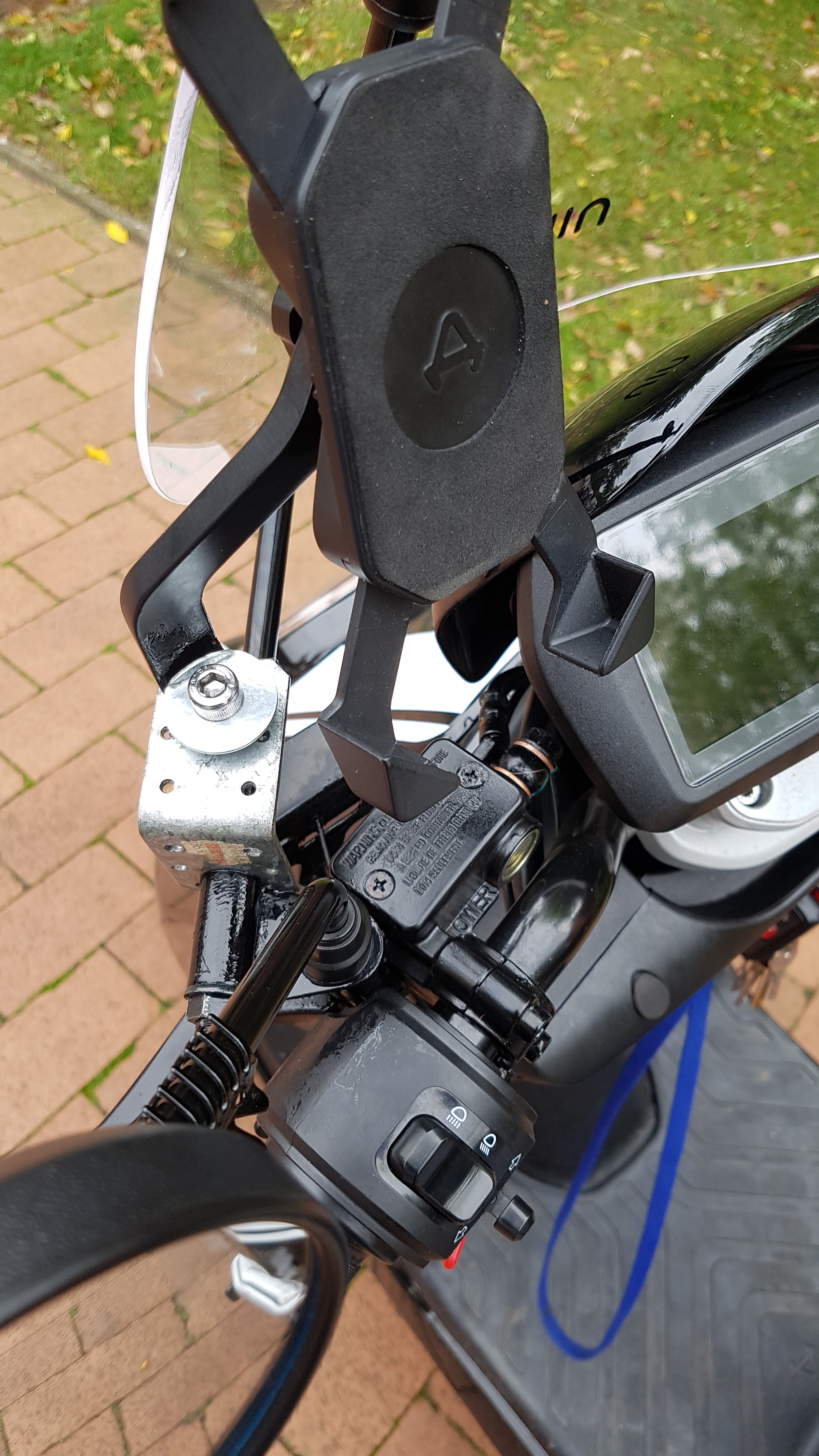 Habe das erstmal so gelöst mit der Wetterschutzscheibe und der Handyhalterung.