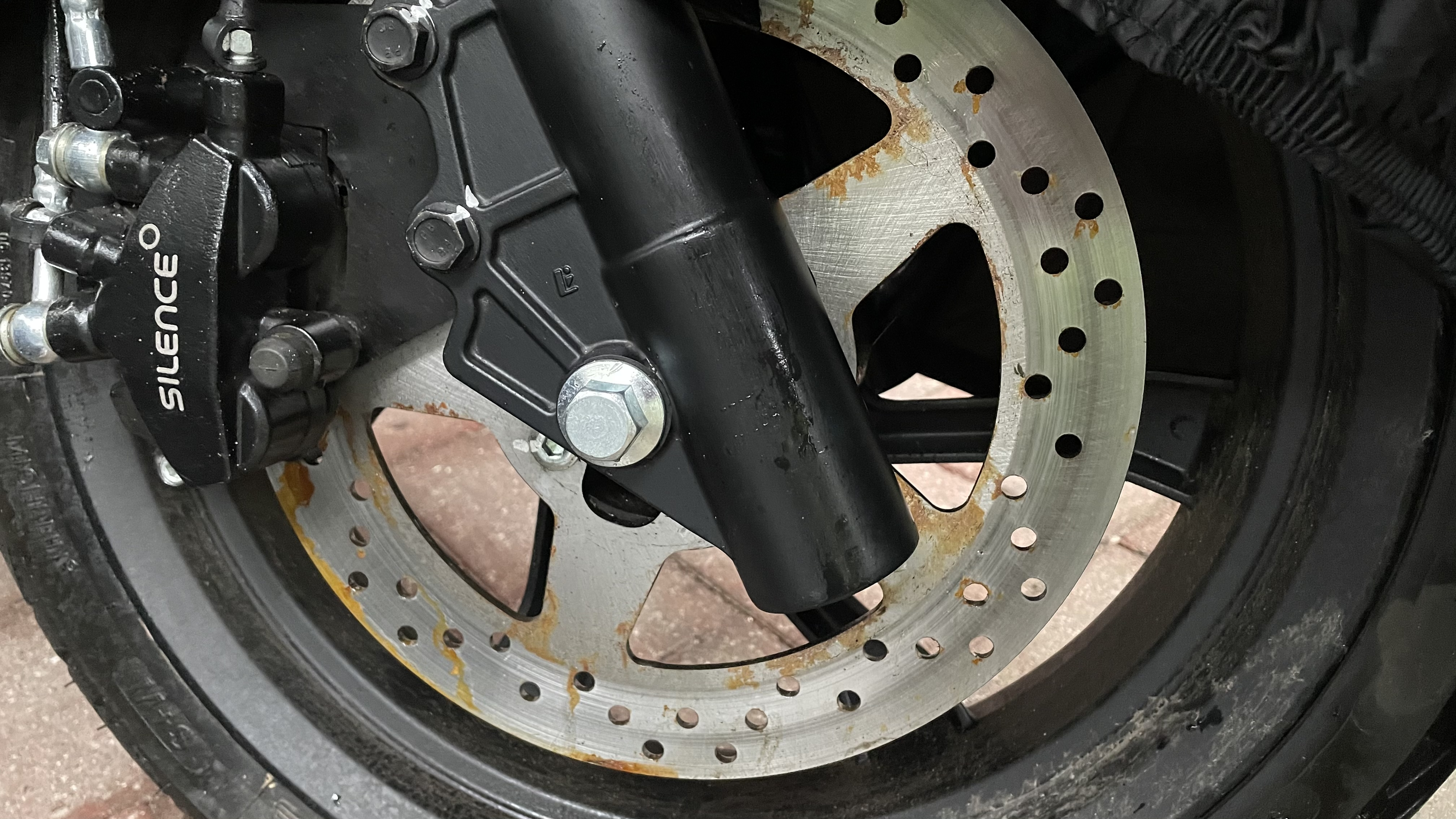 Denke ich auch. Bremsscheiben-Schleifstaub in Nässe gebunden - Roller nass abgestellt bei klimatischen Bedingungen, bei denen die Nässe nicht schnell abtrocknet. Sollte sich mit einem Lappen entfernen lassen. Kurz gegoogelt und gefunden: