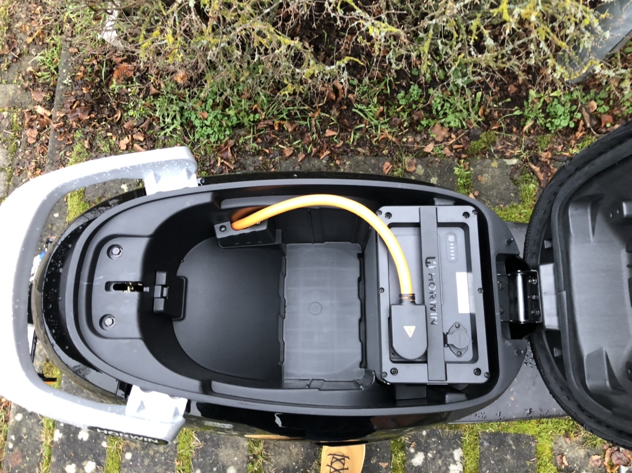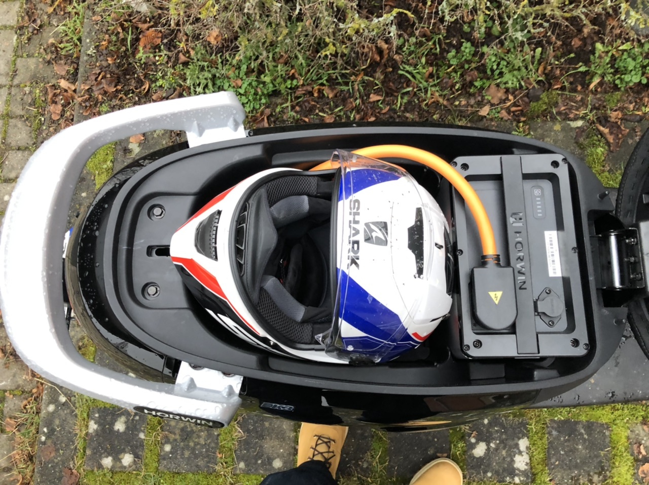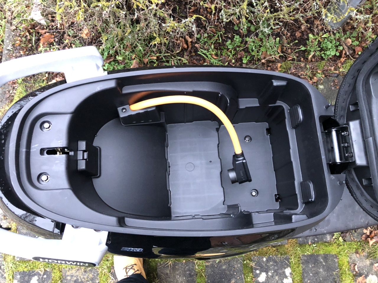 Im Anhang hab ich wie gewünscht noch ein paar Fotos vor allem vom Stauraum. Wie man sieht passt wenn überhaupt ein kleiner (!) Jet-Helm rein. Kennzeichenhalter ist gut gelungen finde ich. Ein „großes“ Kennzeichen würde ich da aber nicht dran machen, dafür sieht ein Leichtkraftrad-Kennzeichen umso besser dran aus.