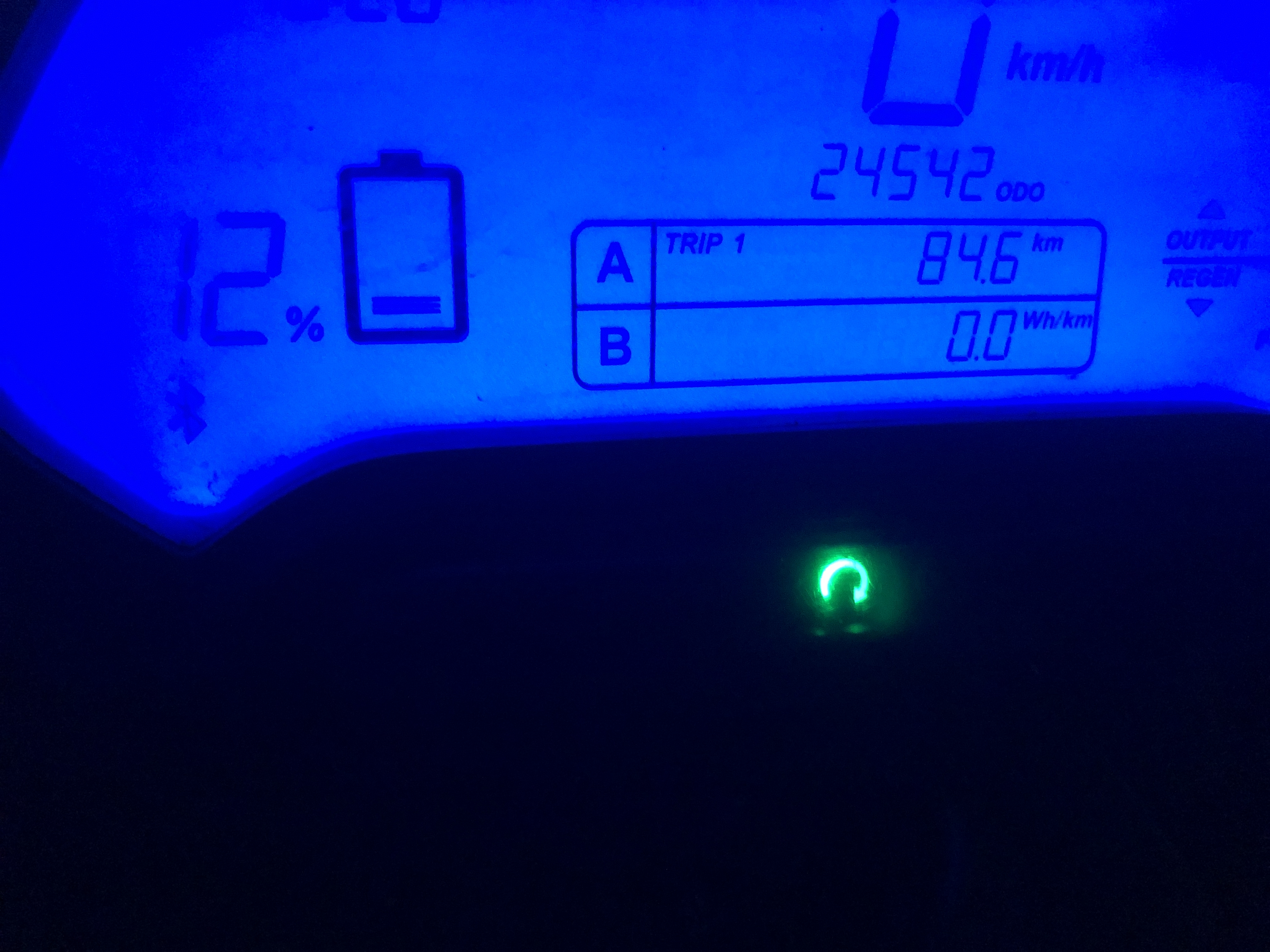 Auf dieser Runde war einzig die Motortemperatur der limitierenden Faktor (bis zu 140°C App Anzeige und gelbem Thermometerblinken in der Hauptanzeige), zu keiner Zeit mehr die Reichweite. Auch auf der finalen Autobahnhatz, wo ich mich meist auf Richtgeschwindigkeit 130 beschränkt habe bei dann konstanten 120°C Motoremp. - was echten 100°C entspricht, weil der Motorsensor um gute 23 Kelvin vorgeht gegenüber den korrekt anzeigenden Batterie- und Controllertemperaturen. Mit 11/12% und 13,2km Restreichweite bei angezeigten 84,6 gefahrenen km (reel etwas über 83km) kam ich dann daheim an: Nach einer Abkühlphase luden sie zusammen, jetzt etwas länger als bislang gewohnt. Heute morgen bei ganz voll dann 8,65kWh primär nachgeladen: