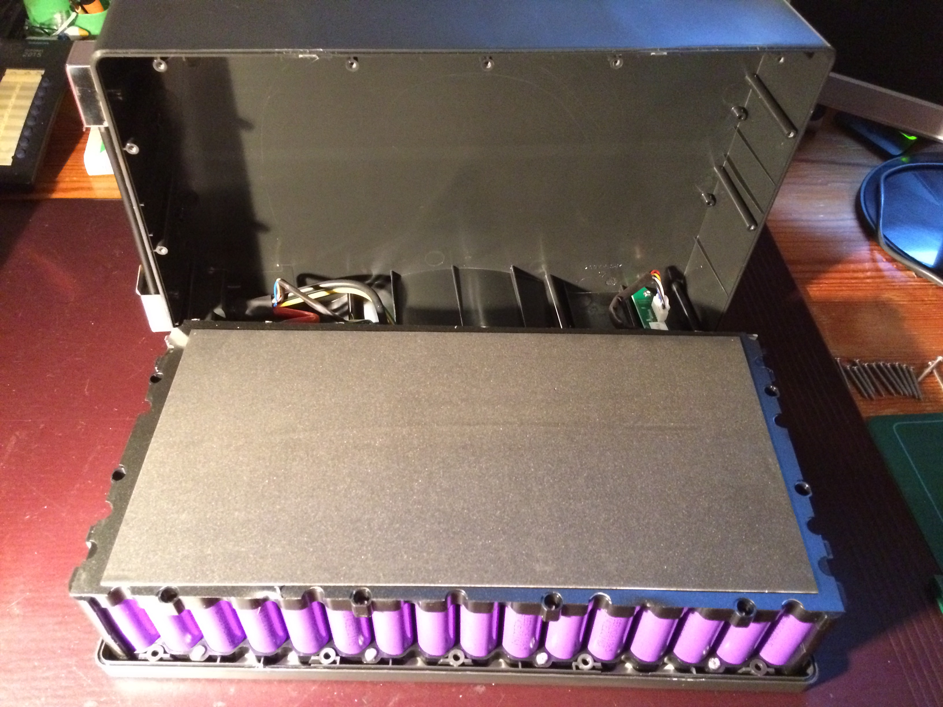 Der Seed Akku ist deutlich kleiner und leichter als der ATU Original-Akku. Interessanterweise trägt er dieselbe Bezeichung wie der ATU-Akku: 16ICR19/65-8. Tatsächlich sind beide Typen 16s Lithium-Ionen Akkus mit einer Ladeschlussspannung von 65.6V (Seed) bzw. 67.2V (E-Cruzer). Das sind 4.1V bzw. 4.2V pro Zelle. Der Seed Akku kann aber ohne weiteres mit dem Ladegerät des E-Cruzers auf 67.2V aufgeladen werden.
