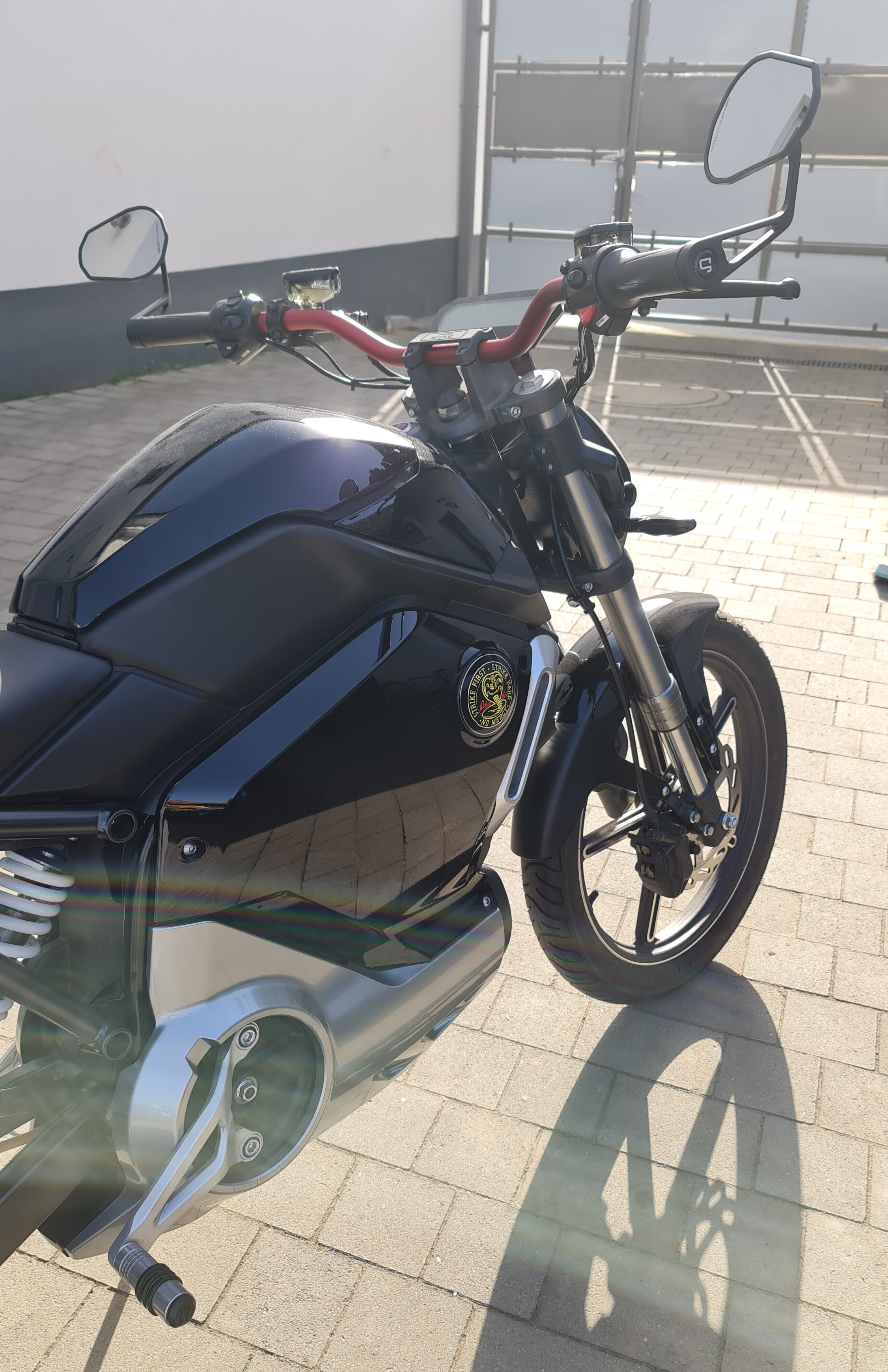 Habe gestern die Modifikation meiner TS begonnen. Breiterer und flacherer Sportlenker und Spiegel von Gazzini.