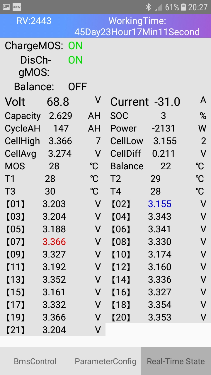 Das ANT BMS stellt das balancieren zum Ladeende leider ein und balanciert nicht weiter. Eventuell muss ich hier die Parametrierung noch mal anpassen.