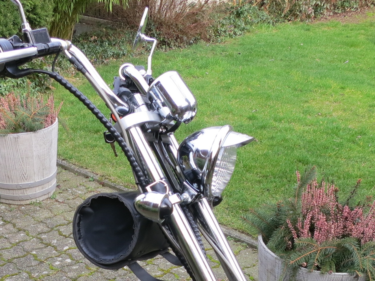 weil ich bei der Harley meiner Frau einen neuen Akku eingebaut habe, kam bei der Gelegenheit auch gleich ein ordentlicher Scheinwerfer dran.