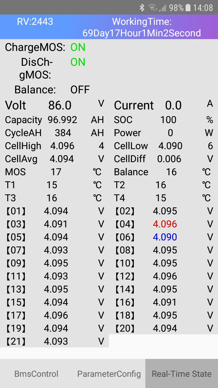 Heute früh direkt nach dem fahren bei 24% SOC lag die größte Zelldifferenz bei 18mV Zellen.