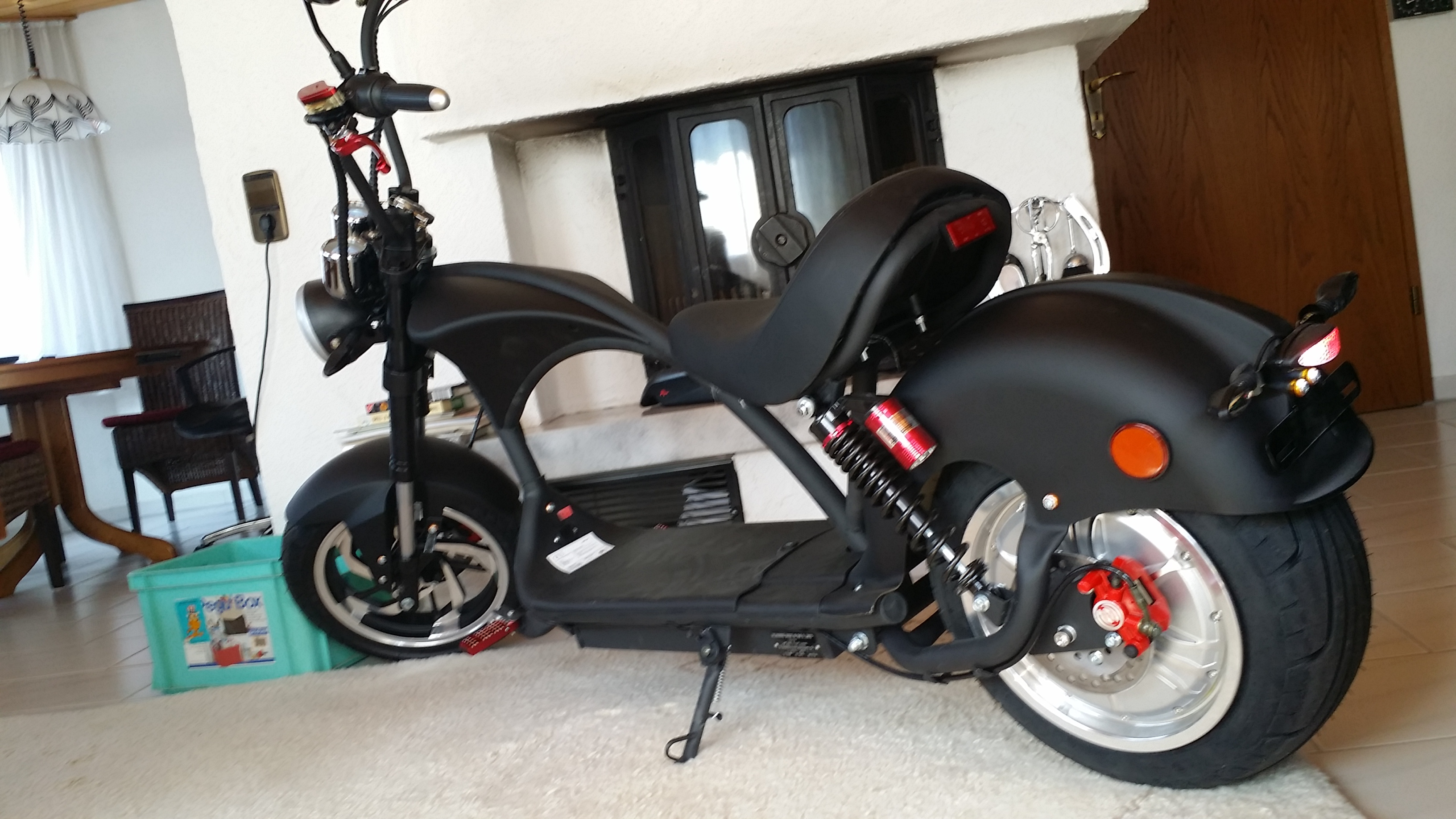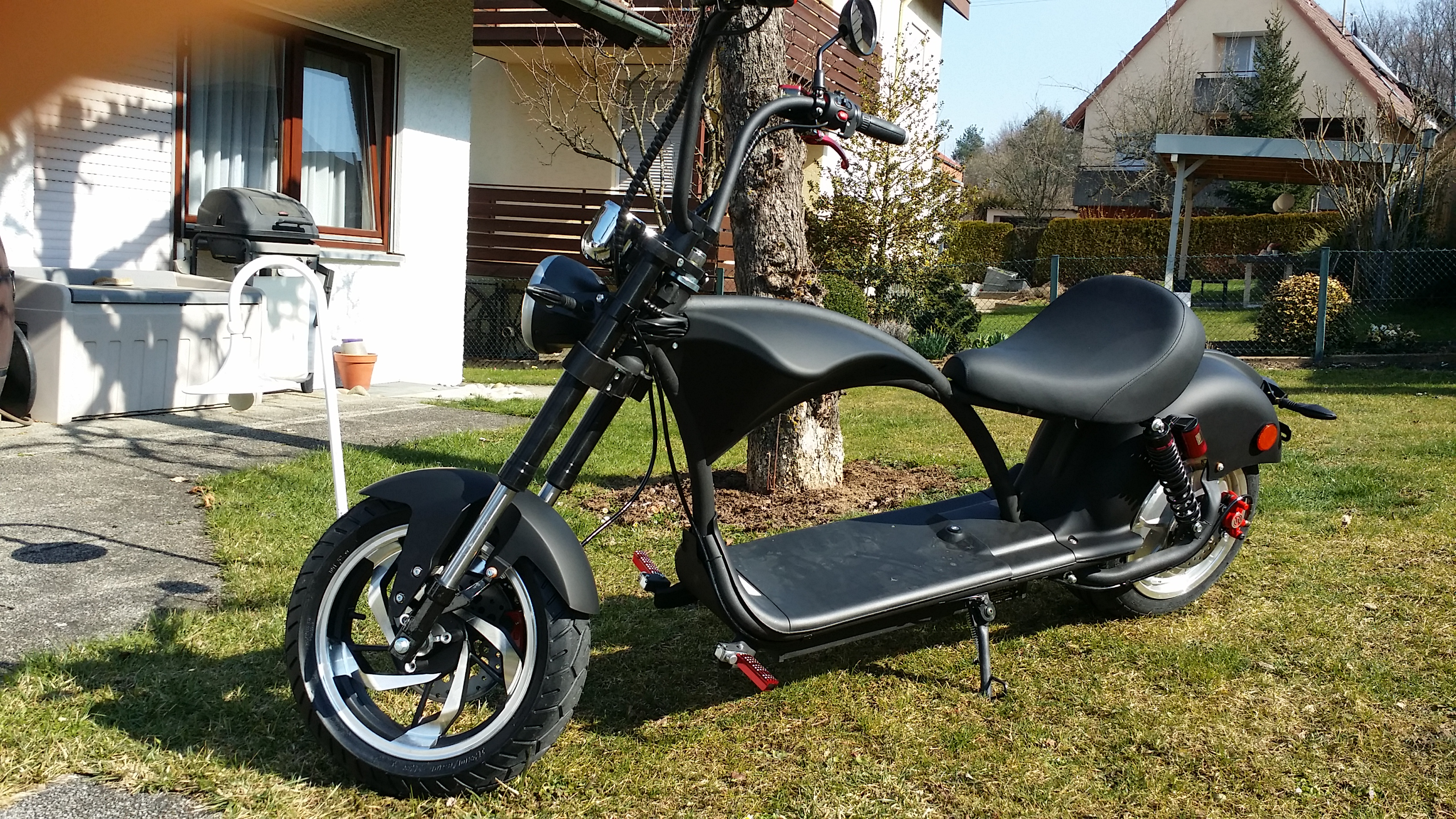 Der Chopper ist definitiv ein Hingucker und man fällt auf. Ich stimme allem zu, dass Durchzug und Fahrverhalten absolut in Ordnung gehen. Die Federung ist bei mir null gegeben und jedes Schlagloch sollte umfahren werden - wenn möglich. Aber für die Stadt um von A-B zu kommen - ideal. Leider ist das BMS bei dem Roller noch so rudimentär, dass in Abhängigkeit der Spannung auch die Leistung stetig einbricht und man nach 20 km noch circa 40 km/h schafft. Das ist etwas blöde. Man sollte möglichst die ganz großen Hauptstraßen in der City dann meiden, wenn man nicht als schnelleres Fahrrad tituliert werden will.