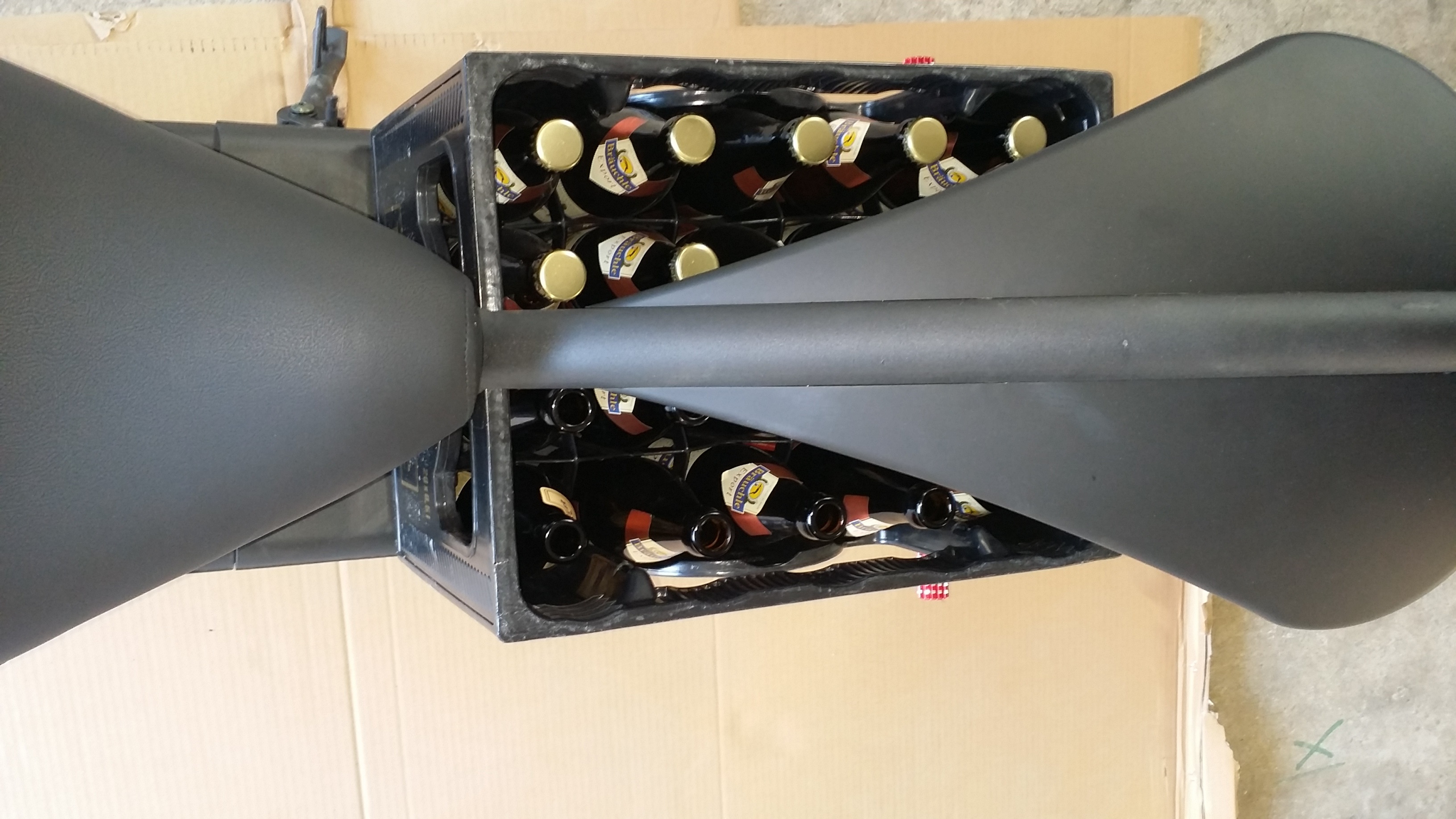 Hier sehe ich schon provokativ die Bierkiste. Ja, ich habe auch schon Kaminholz im Baumarkt damit transportiert und wurde prompt angehalten. Das muss alles absolut gesichert sein und ich empfehle hier spezielle Satteltaschen oder andere Motorradtaschen, die sich gut sichern lassen. Man glaubt gar nicht, welche Quer- und Längskräfte kommen, wenn man mal voll in die Eisen bei 45 km/h muss. Man riskiert hier schwere Unfälle und Beschädigungen an dem eigenen Chopper und auch an anderen Verkehrsteilnehmer. Absolut nicht zu empfehlen. Bei mir gab es nur eine Verwarnung und ein kleines Bußgeld von 11 Euro. Jetzt fahre ich mit einer Helmtasche der Marke "Q-bag", die ich mit der Abdeckung vom Batteriefach verbunden habe. Der Clou hier: Die Tasche ist abschließbar und man kann schön einen "Jet Helm" verstauen oder sogar mal andere kleine Sachen mitnehmen (Essen, Sportbekleidung etc. ...) Die Firma ATH bietet jetzt einen Gepäckträger zum Nachrüsten an. Der kostet in meinen Augen aber zu viel und der Chopper verträgt auch nur geringe Achslasten, sodass man nicht unbedingt 100kg extra mitnehmen sollte. Eine zweite Person definitiv nicht!
