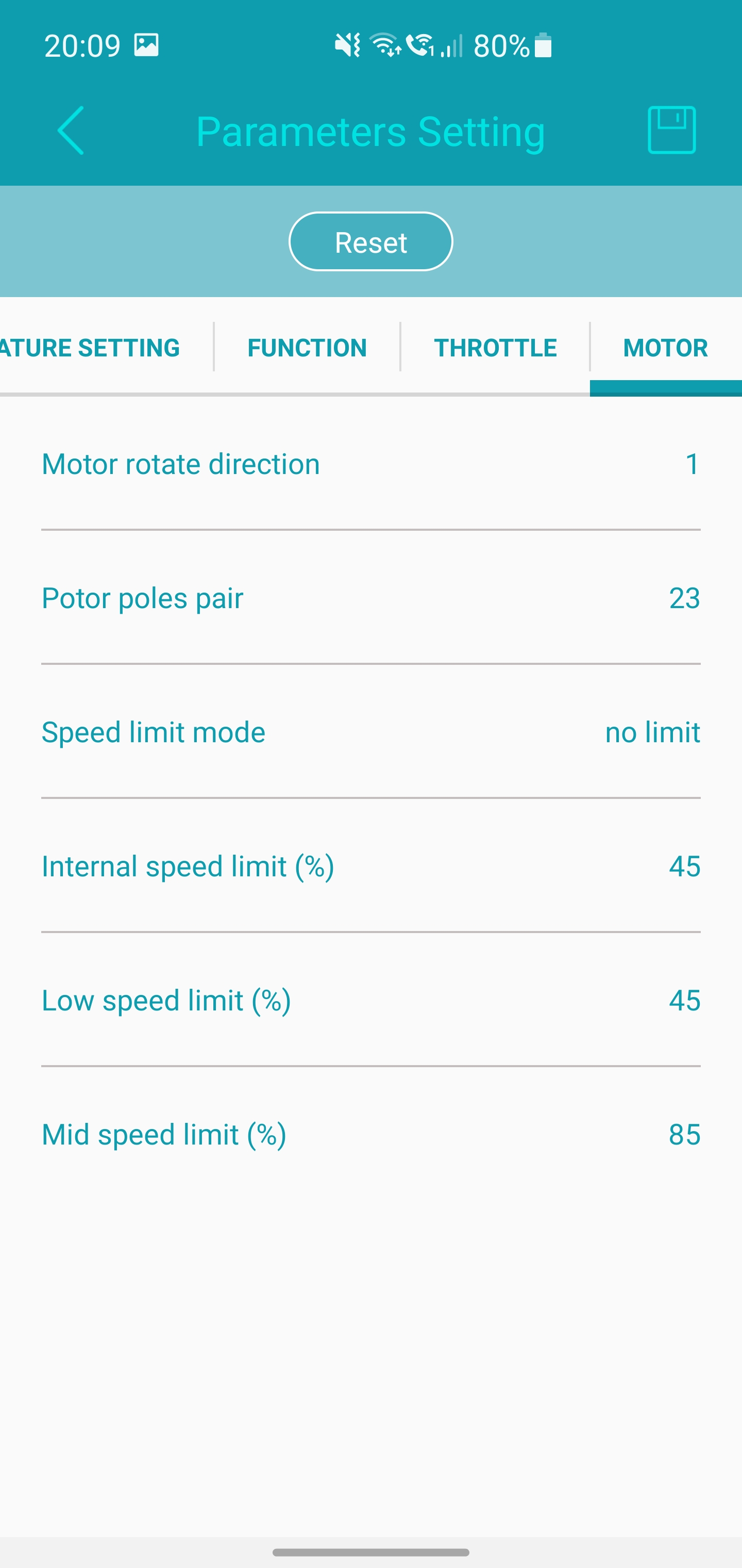 es gibt zwei Temperaturüberwachungen, die des Controllers, die kann man nicht deaktivieren, und die des Motors, die muss man aktivieren, wenn vorhanden (6. Pin am Hall-Anschluss geht zum PTC im motor), das geht nur mit einer speziellen version der Software oder mit meinem Arduino-Sketch.