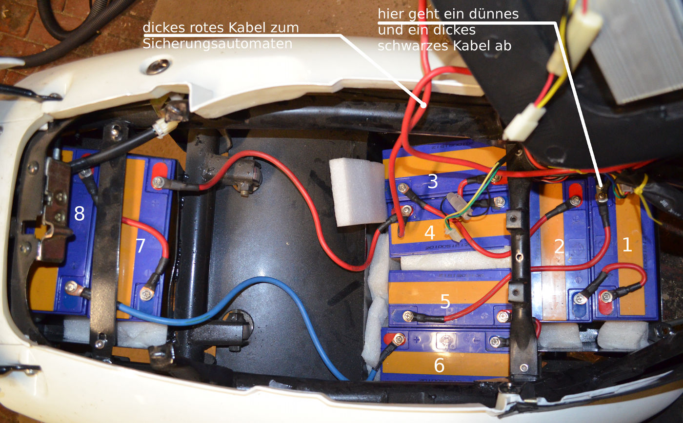 Jo, der Roller hat 8 Akkus. Bin hier grad am messen und am einbauen einer Messleiste, damit das ganze Geraffel nicht immer ab muss...