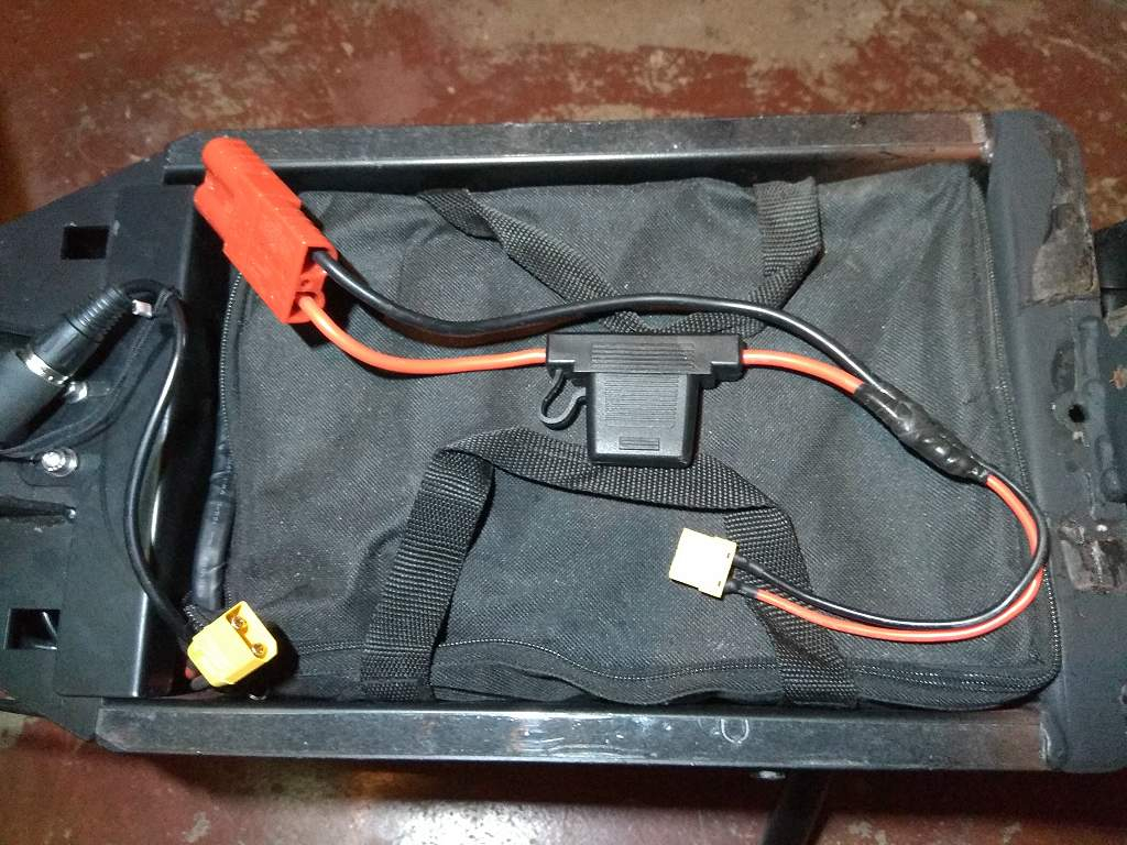 hier kannst meinen controller, den akku und den adapter mal sehen, das dickere kabel passt auch perfekt noch vor dem akku rein, so das nichts gequetscht wird und den ladeanschluß hab ich vorne am trittbrett herausgeführt. das werde ich vielleicht mal irgendwann noch ändern und die blei-ladebuchse umlöten mit einem adapter damit man über die original-buchse laden kann ohne kabel nach aussen.