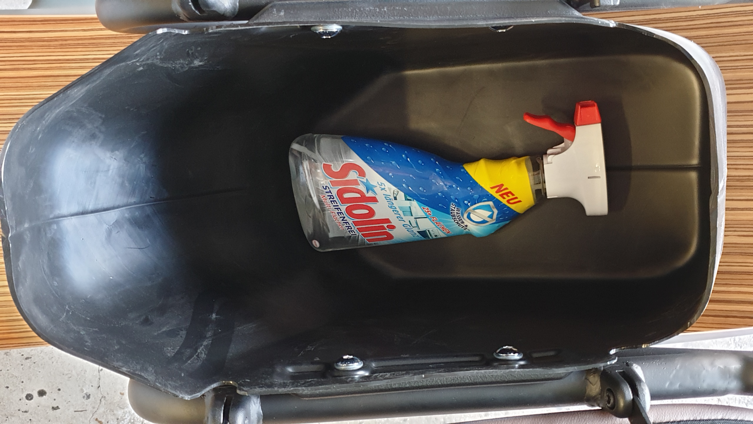 Nun kann man zur Verringerung des Luftwiderstandes und zur Erhöhung des Designbeiwertes die Box schnell entfernen und zu Hause lassen!