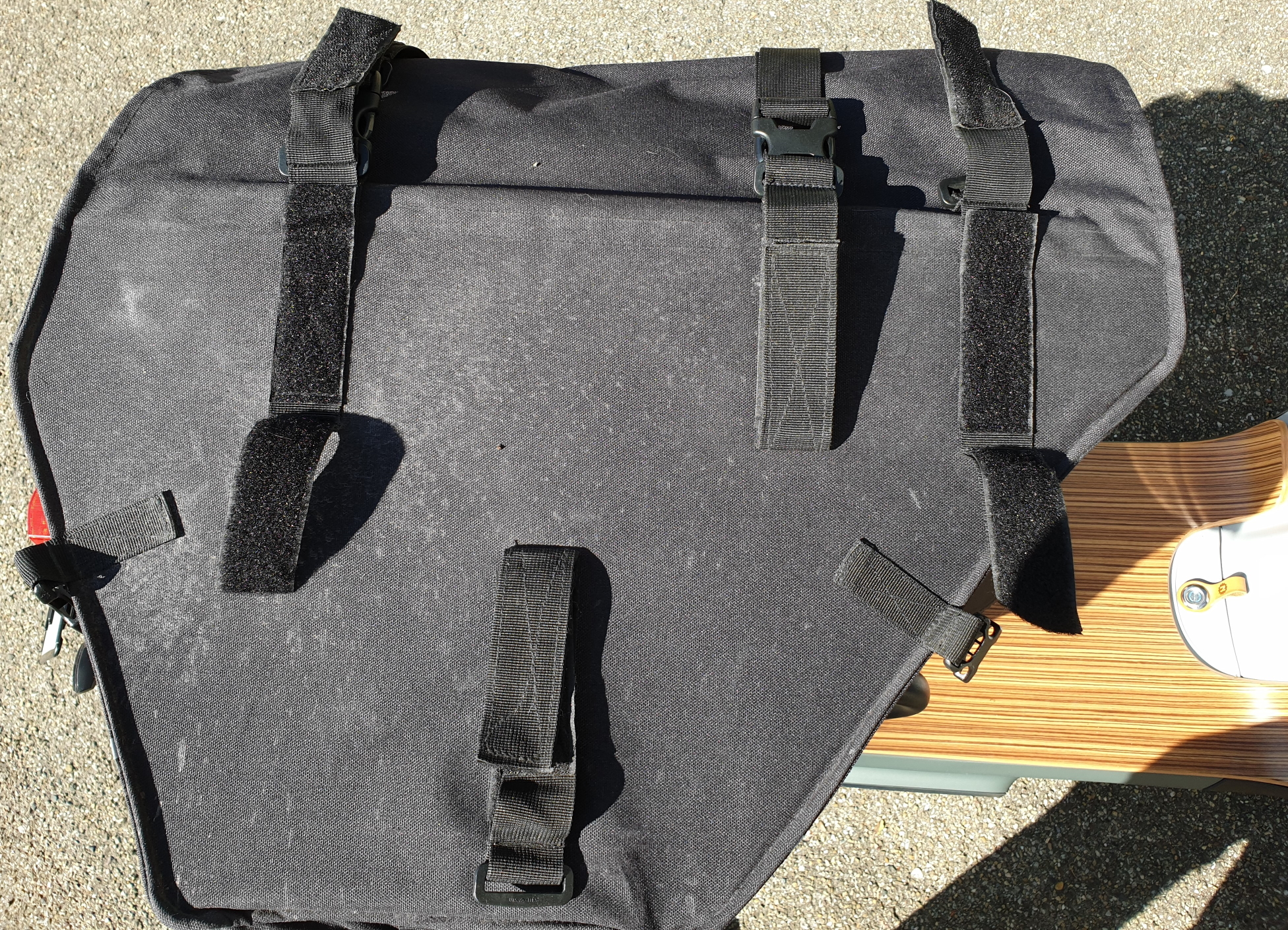 Die Satteltaschen werden mit den Klettverschlüssen sicher am NES befestigt. -