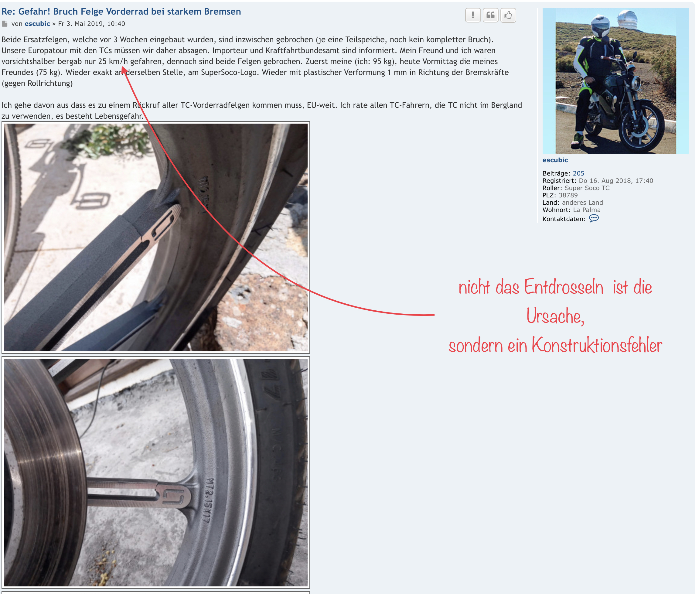 Re: Gefahr! Bruch Felge Vorderrad bei starkem Bremsen