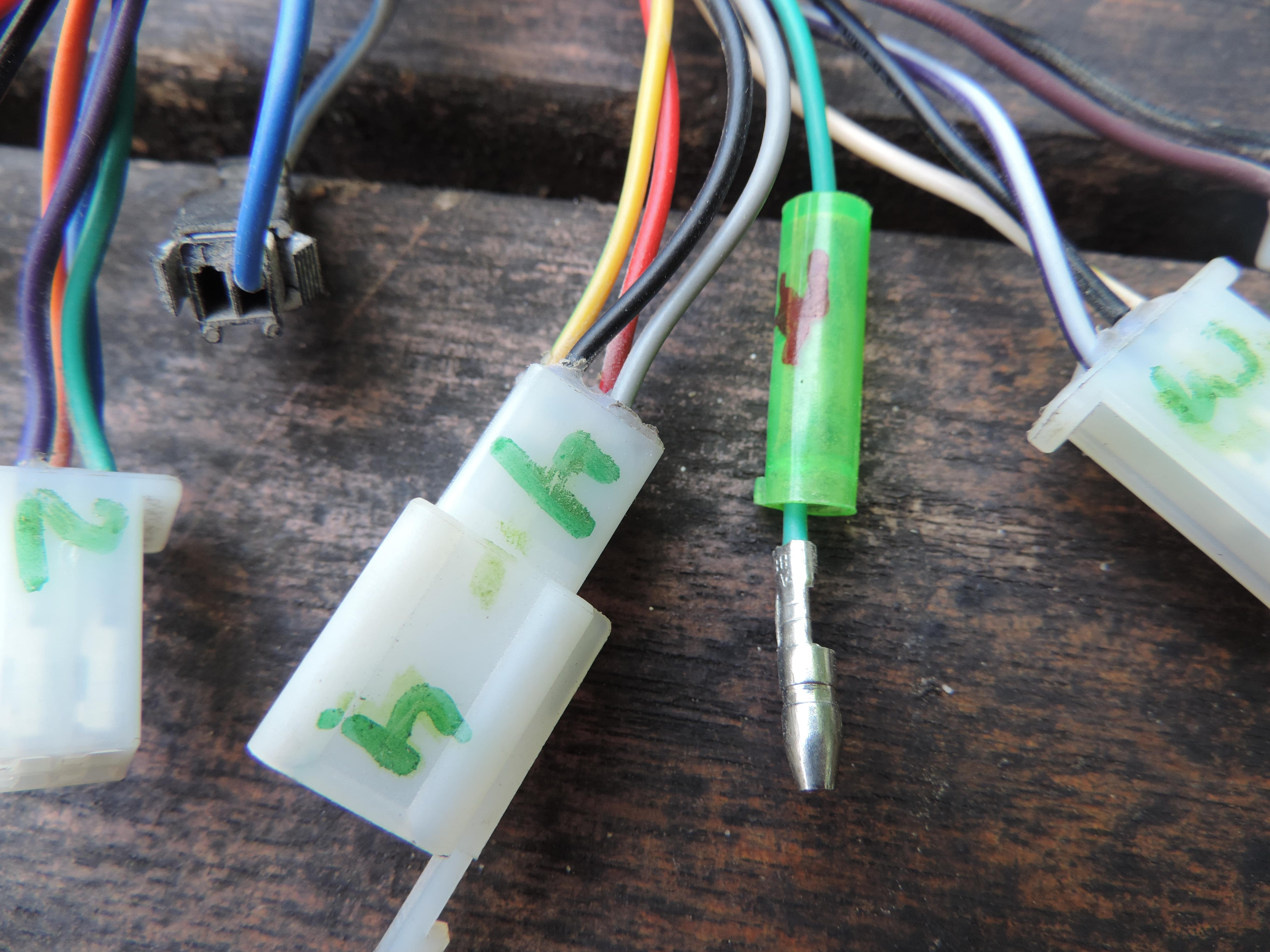 die frage ist was bedeuten die anderen stecker? Wichtige Leitungen sind die Sicherheitskreise der Bremsen und des Seitenständers, ohne die gar nichts laufen wird. wo sind die?