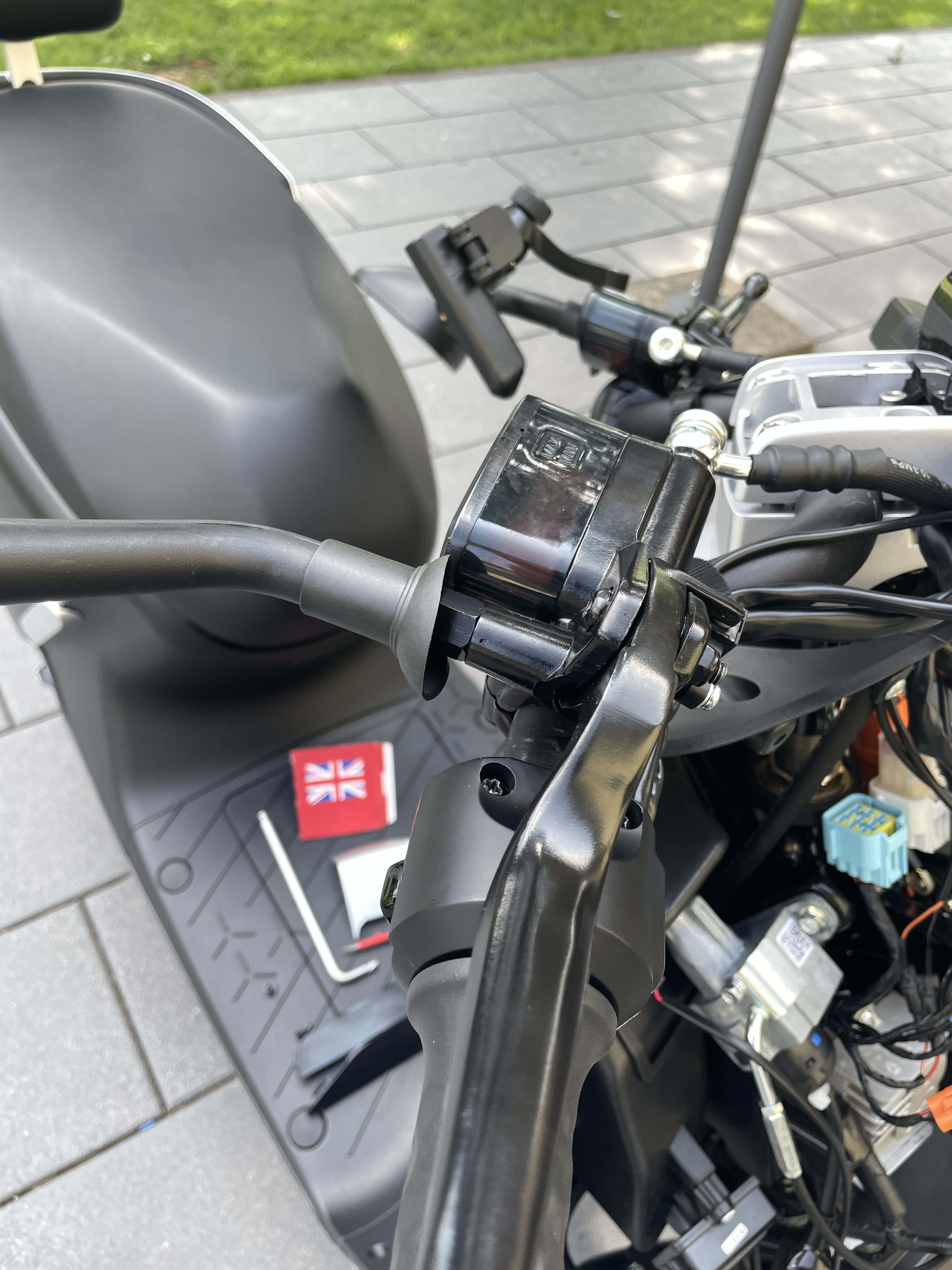 Ich habe ihn auf der rechten Seite montiert, das Kabel zusammen neben den Vorhandenen verlegt und es passte perfekt durch die Kabelführung am Lenker.