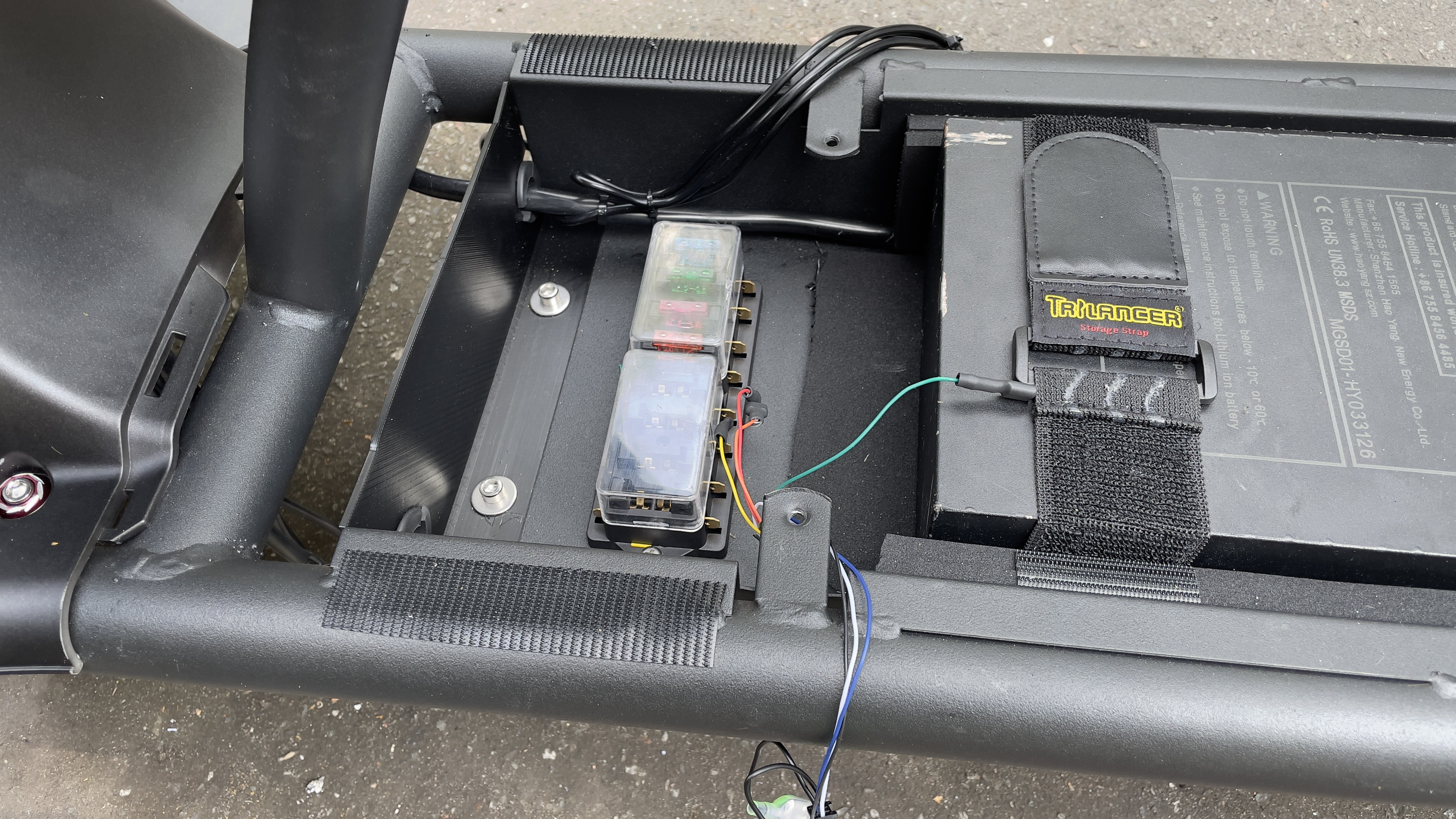 Der gedruckte Kennzeichenhalter passt. In dem Atemzug gleich noch mal die Kabel "schön" gemacht. Da die Karre ja eh dann wieder zerlegt war gleich mal um die Anschlüsse im Batteriekasten gekümmert