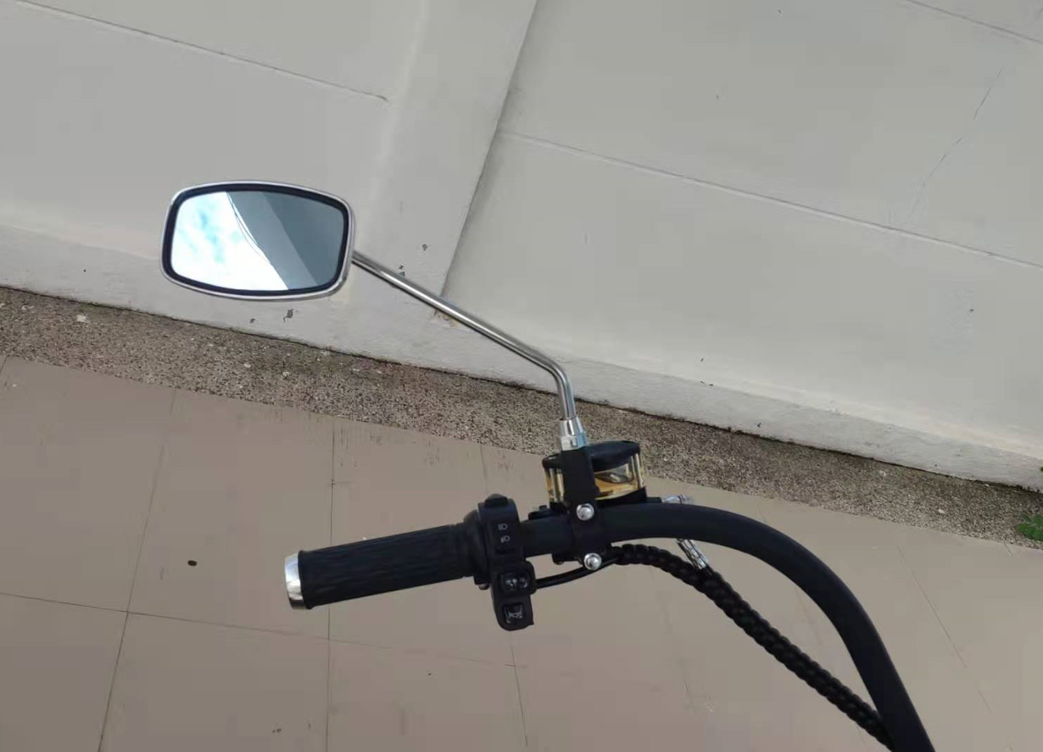 Somit beleibt der original Lader mit 64V einstellung zu hause. Ich habe mir auch ein zweites 10m Netzkabel in meiner offenen garage (Thailand typisch) an eine hoch angebrachte und von drinnen abschaltbare steckdose mehr oder weniger fest angebracht. Es wird normal aufgewickelt und auf Kopfhöhe ausser sicht unterm dach hingehängt. Damit wird das aufladen zuhause ohne die batterie jedesmal rauszunehmen auch einfach.