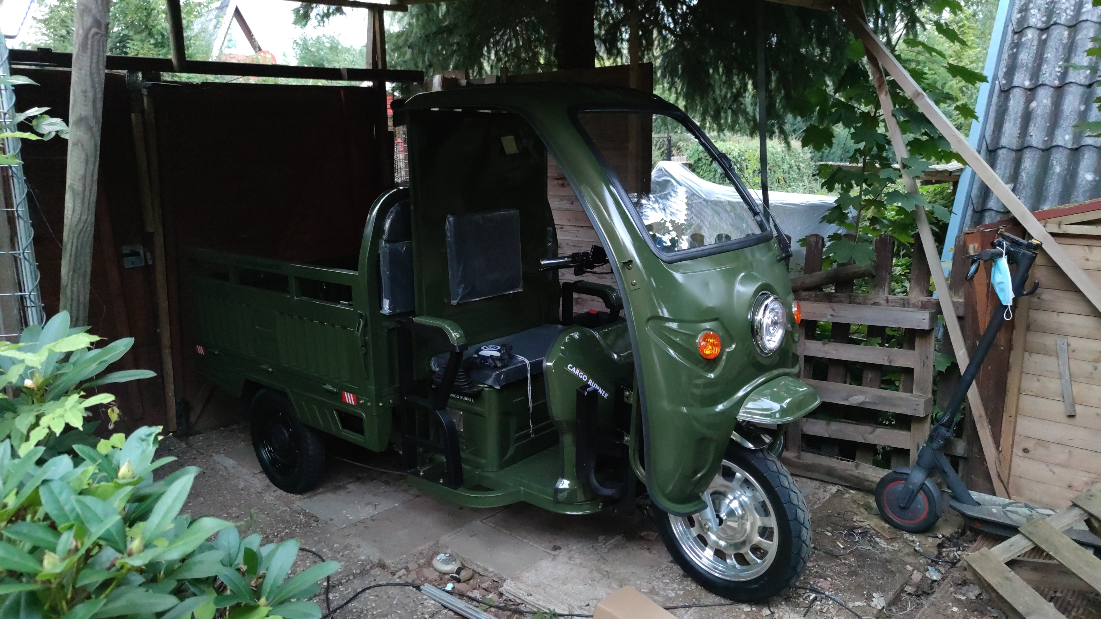 Man sitzt etwas knapp wegen dem Dach ,aber das kann ich so machen das es past und das Rad streift vorn bei Belastung wenn man voll einschlägt und anfährt , das ist mit einem kleinen verlängerten LenkanSchlag erledigt .