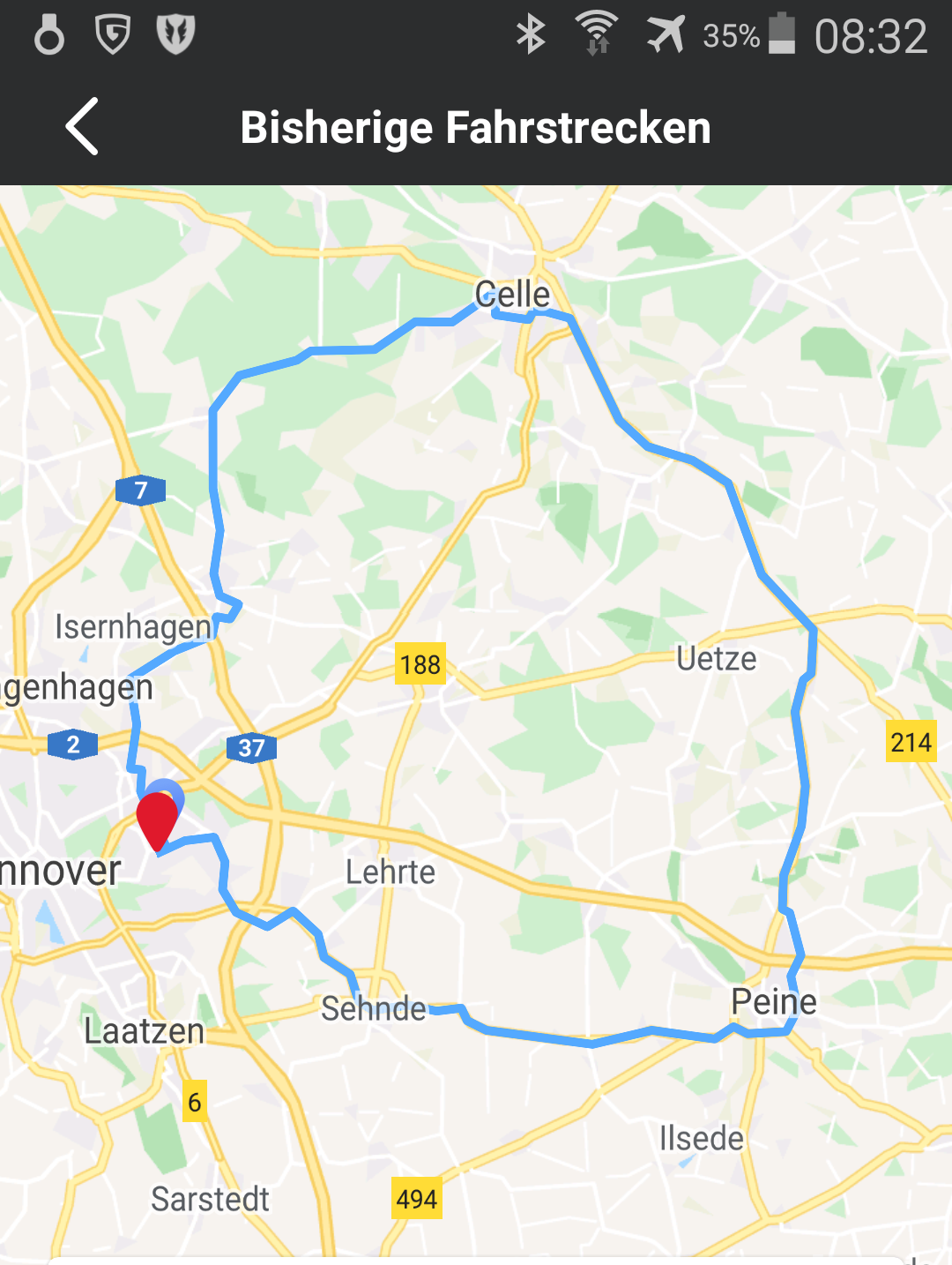 In Sehnde ( ca. 110 km bis hierhin zurückgelegt bei 50% Akku Akkuverbrauch ) hatte ich die Nase voll gehabt und bin mit Vollgas ( 52 km/h laut Tacho ) den Rest nach Haus gefahren. Da merkt man erst wie schnell man mit 50 km/h ist anstatt ( 29 - 32 km/h )ist . Also, mit dem Roller schaffe ich dann 200 Km am Stück. Also fast Hannover - Ockertalsperre und zurück bei Nacht.