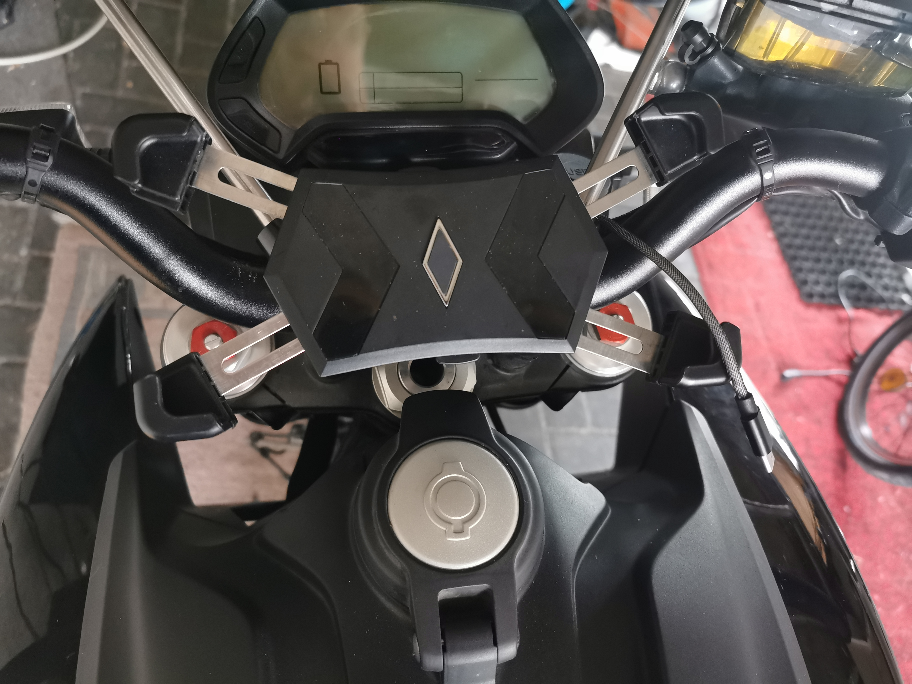 Tankverkleidung weg und Zusatzlader rauslösen und nach hinten legen ist schon nötig, um den grauen Stecker zu finden. Die Frage ist, wie Du den anzapfen willst mit den Ringkabelschuhen Deines Kabels