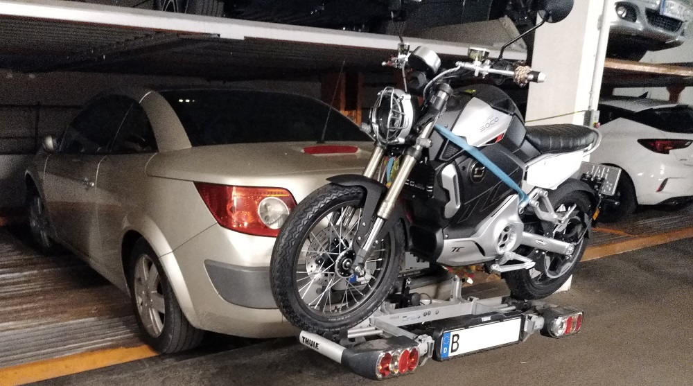 Die TC Max war dazu natürlich mehr veschnürt als hier auf dem Foto, damit sie nicht auf der Autobahn abstürzt oder Scheuerstellen bekommt.