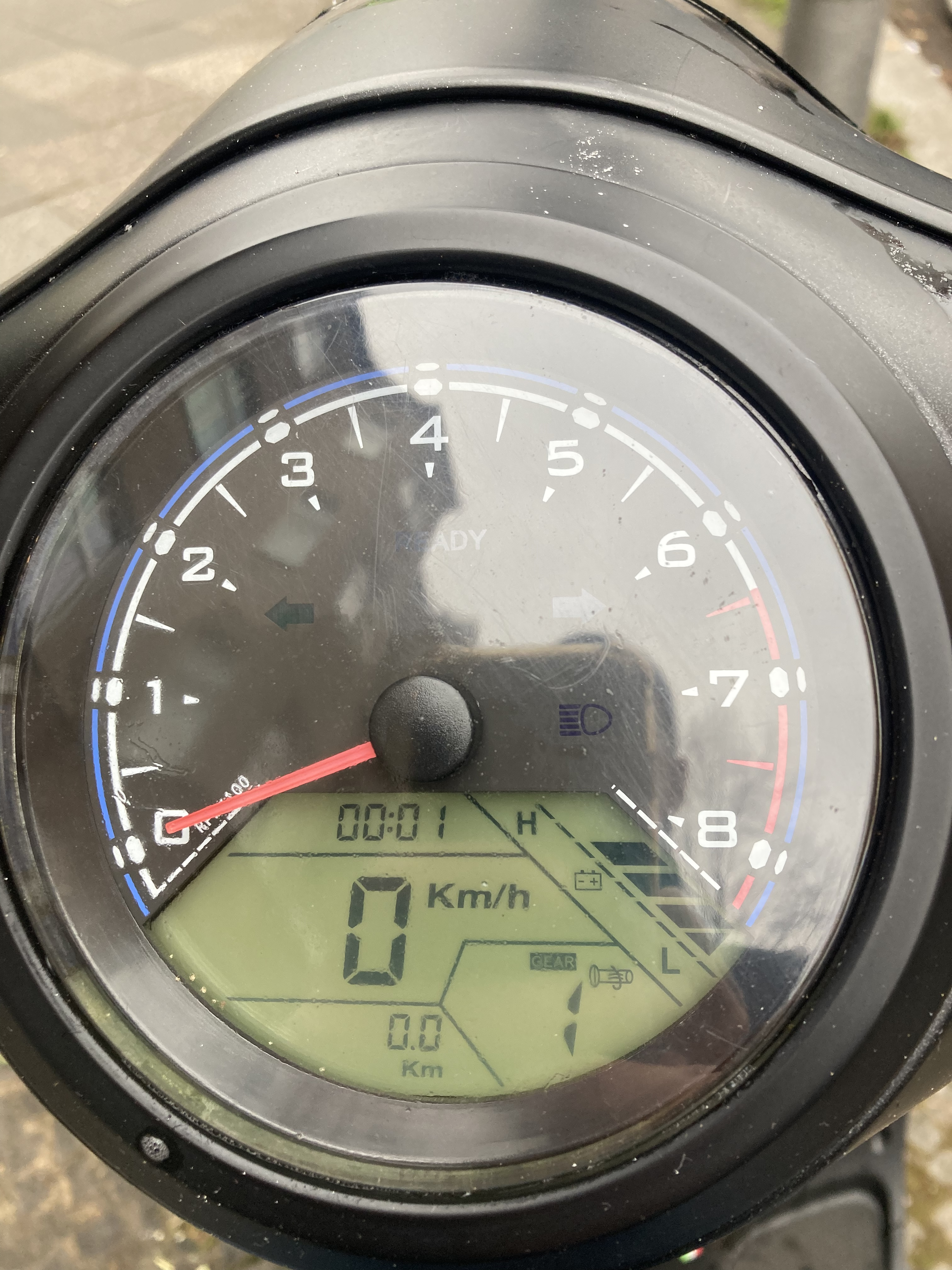 Wenn die Elektronik feststellt, dass der Gasgriff nicht auf 'null' steht, schaltet sie nicht ein. Soll verhindern, dass der Roller sofort losfährt, wenn Du den 'Ready'-Knopf drückst.