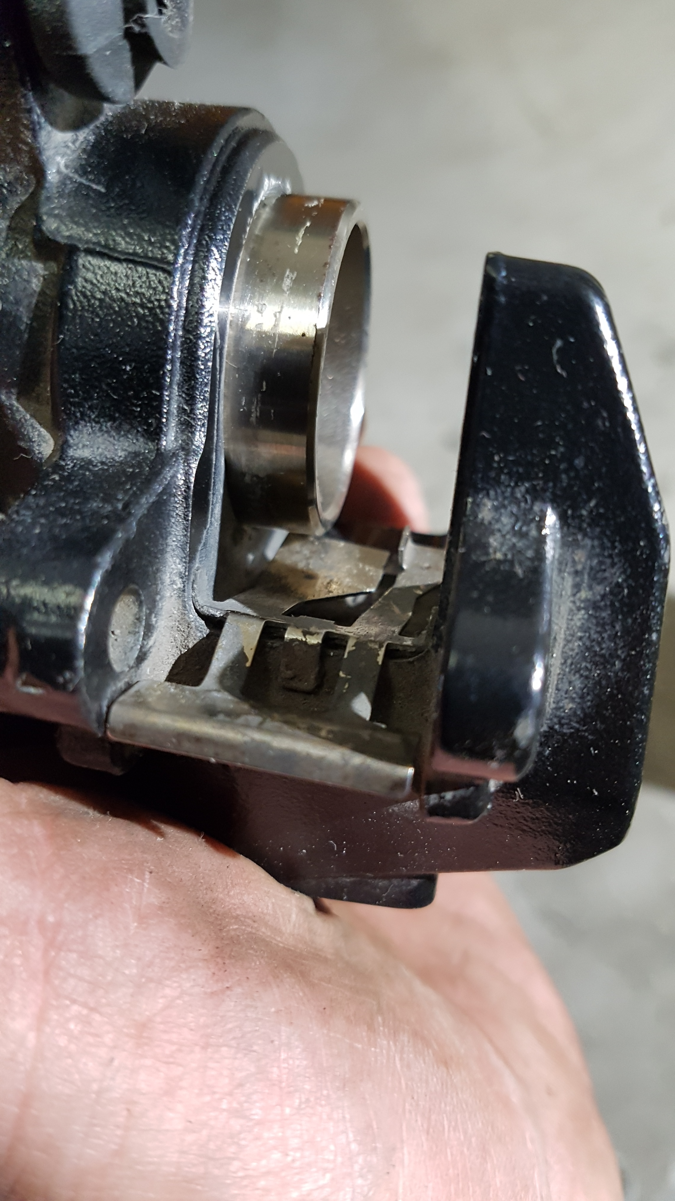 Den Kolben hab ich mit einem Kolbenrücksteller zurückgedrückt. Besser ist das. Zu den Führungsbolzen, die waren fast trocken obwohl ich sie dünn mit Lagerfett ( es gibt auch anderes Fett dafür aber ich hatte es noch da ) eingerieben hatte.