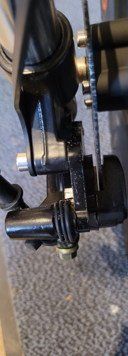 1. Beide Bremsen schleifen stark, die hintere Klingelt dazu. In den Bildern sieht man, dass jeweils eines der Bremsbeläge dicht an der Scheibe liegt, auf der anderen Seite, wäre genug Luft zum Zentrieren, aber wo stellt man das ein? 2. Wo kann man den Bremshebel links in seinem Zug-Weg kürzer machen?
