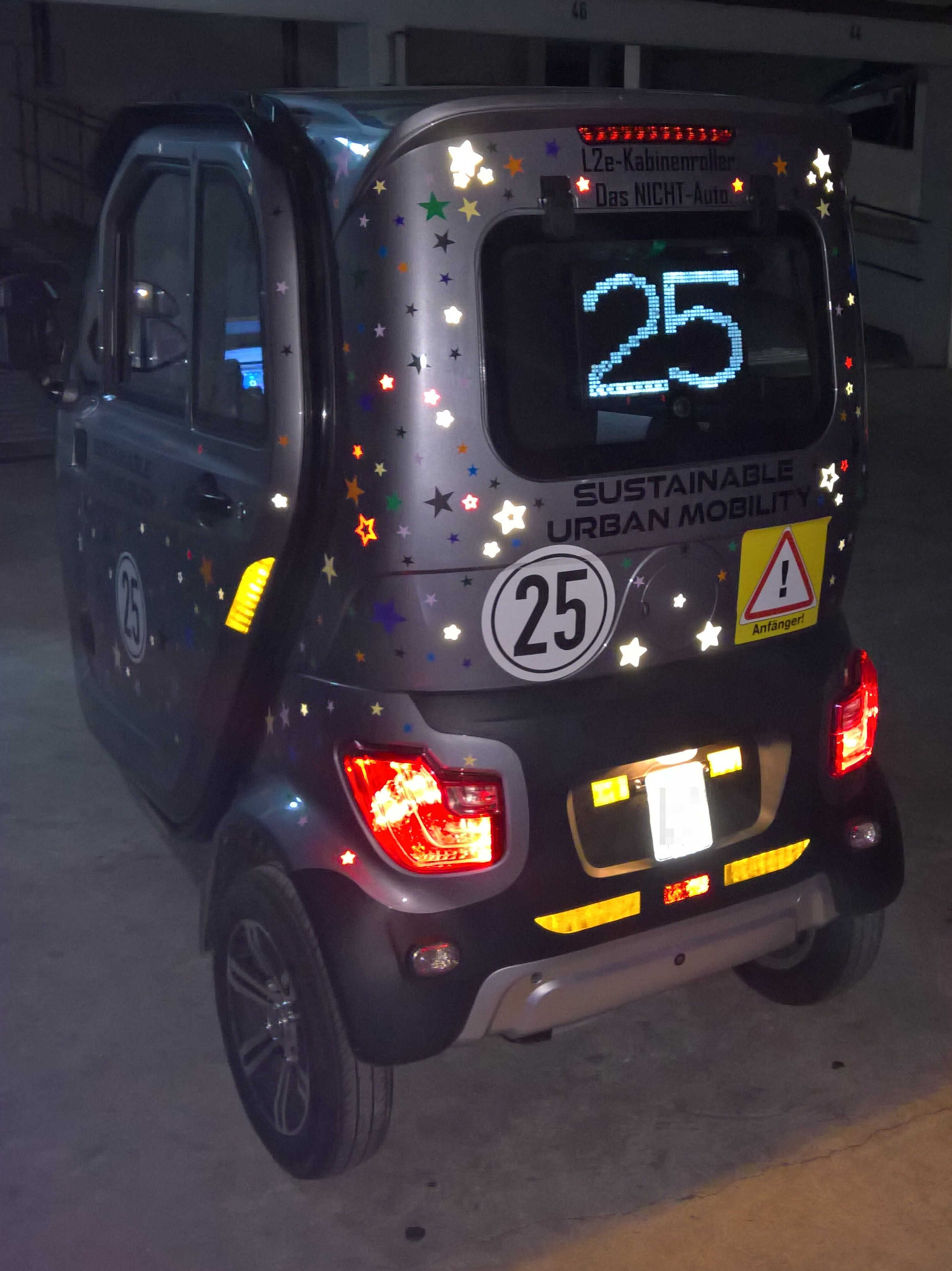 Ich fahre auch einen 25 km/h Kabinenroller. An meinem ist kein 25er Schild drann und ich fahre auch sicher.