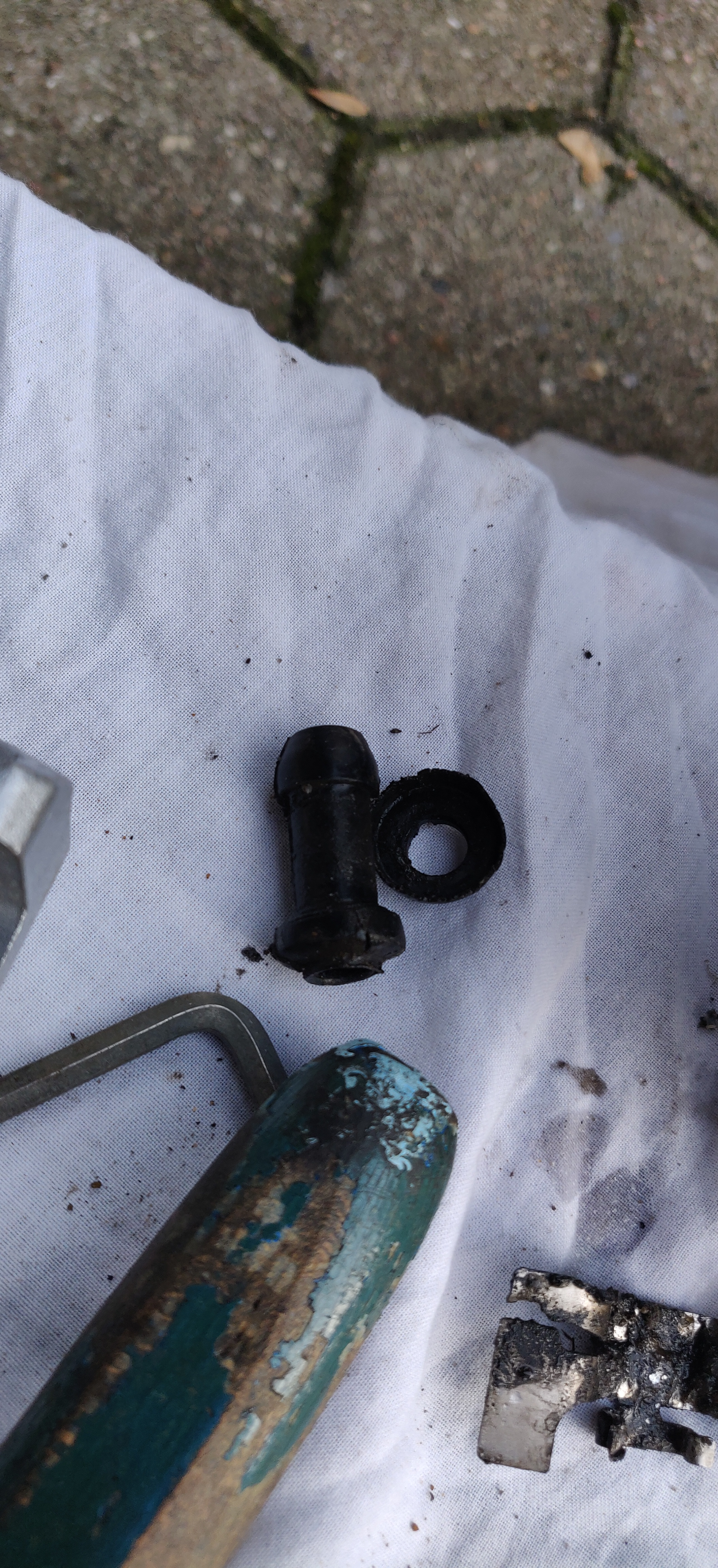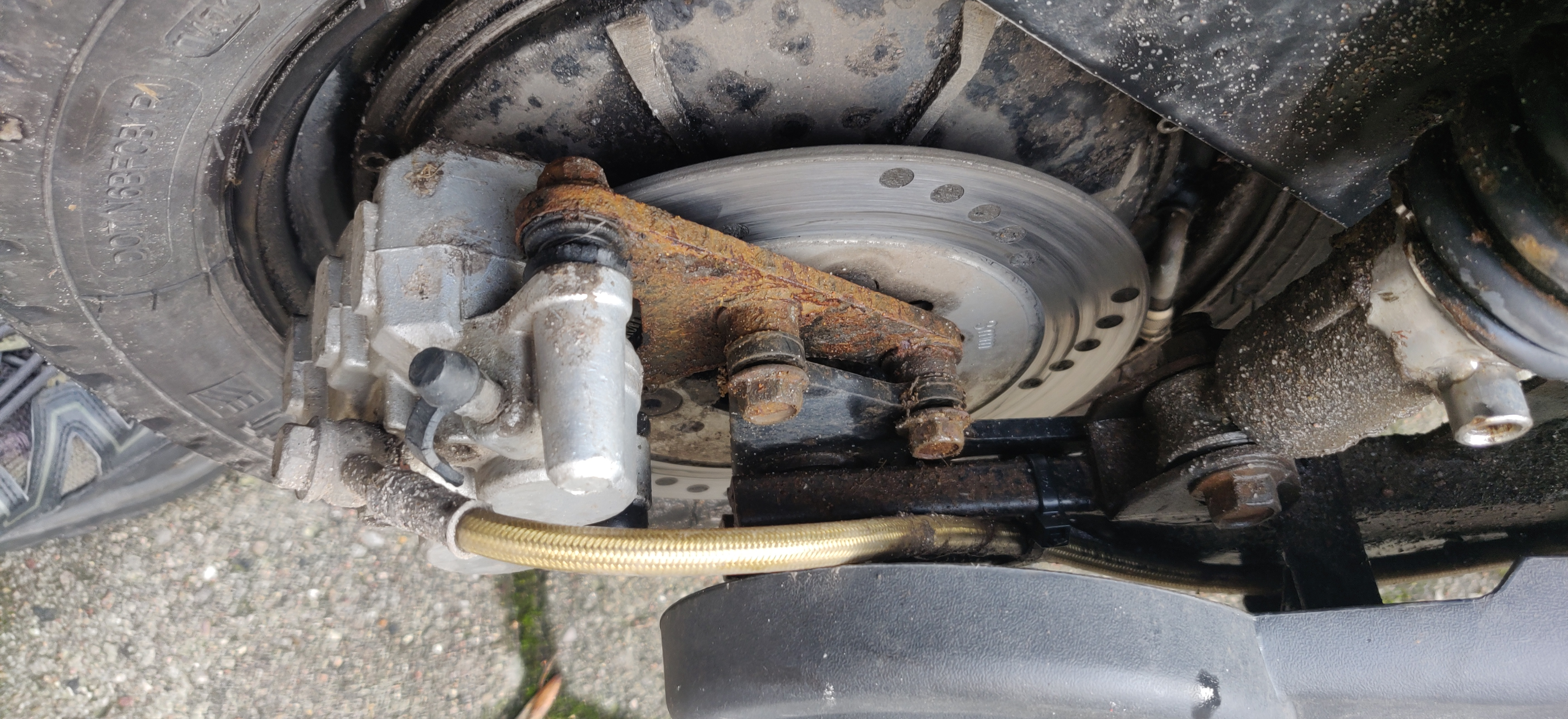 Alles grob reinigen, demontieren, fein reinigen, neue Gummis, Fett und Bolzen, Beläge und Federn gereinigt, Kolben gereinigt und gefettet. Rollt gleich viel besser. Beim Kauf waren die Bremssättel noch Mal als Ersatz dabei.