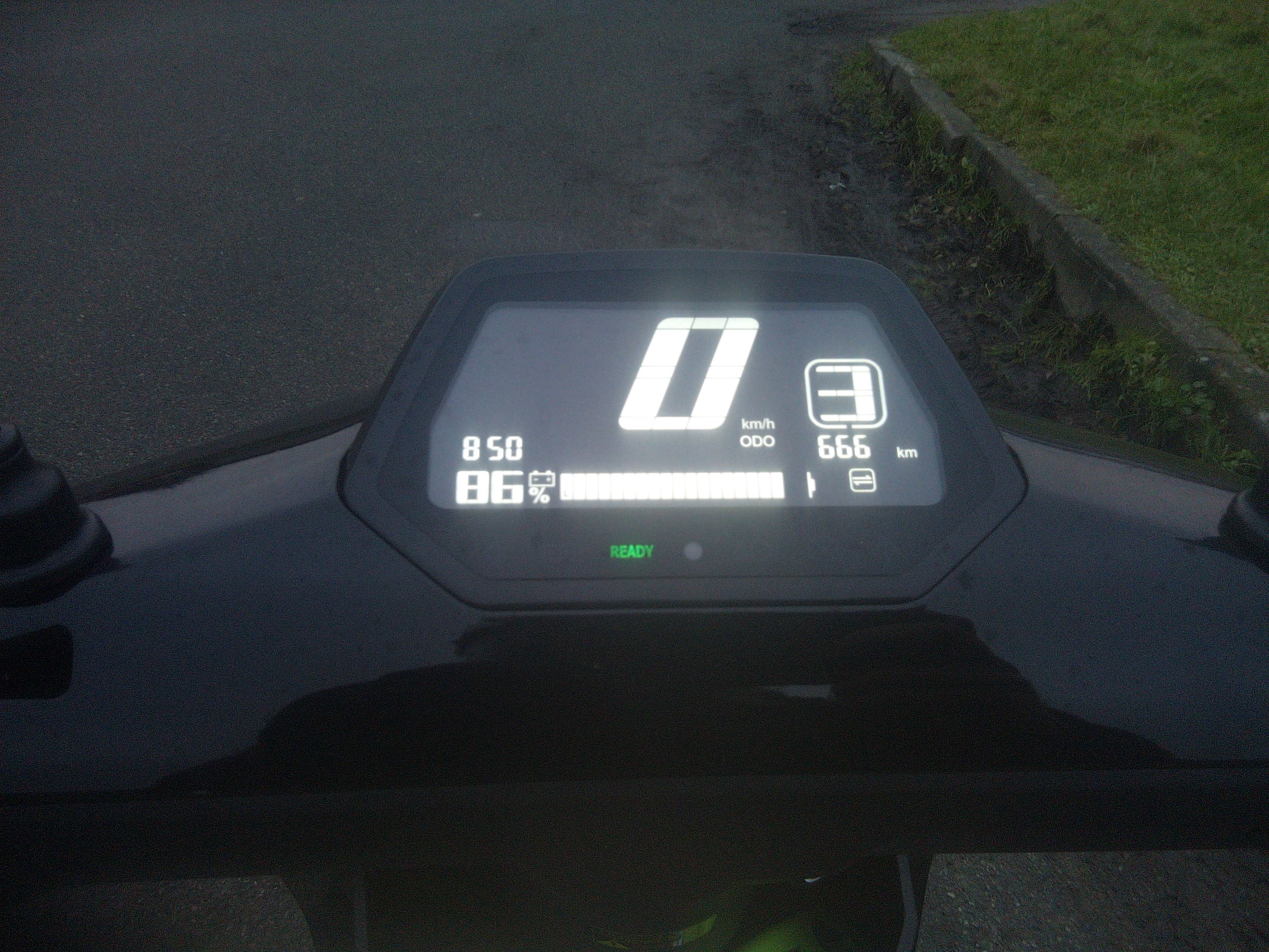 Exakt zwei Wochen nach Erstzulassung...etwas verschwommen, da die Schutzfolie noch auf dem Tacho drauf ist.