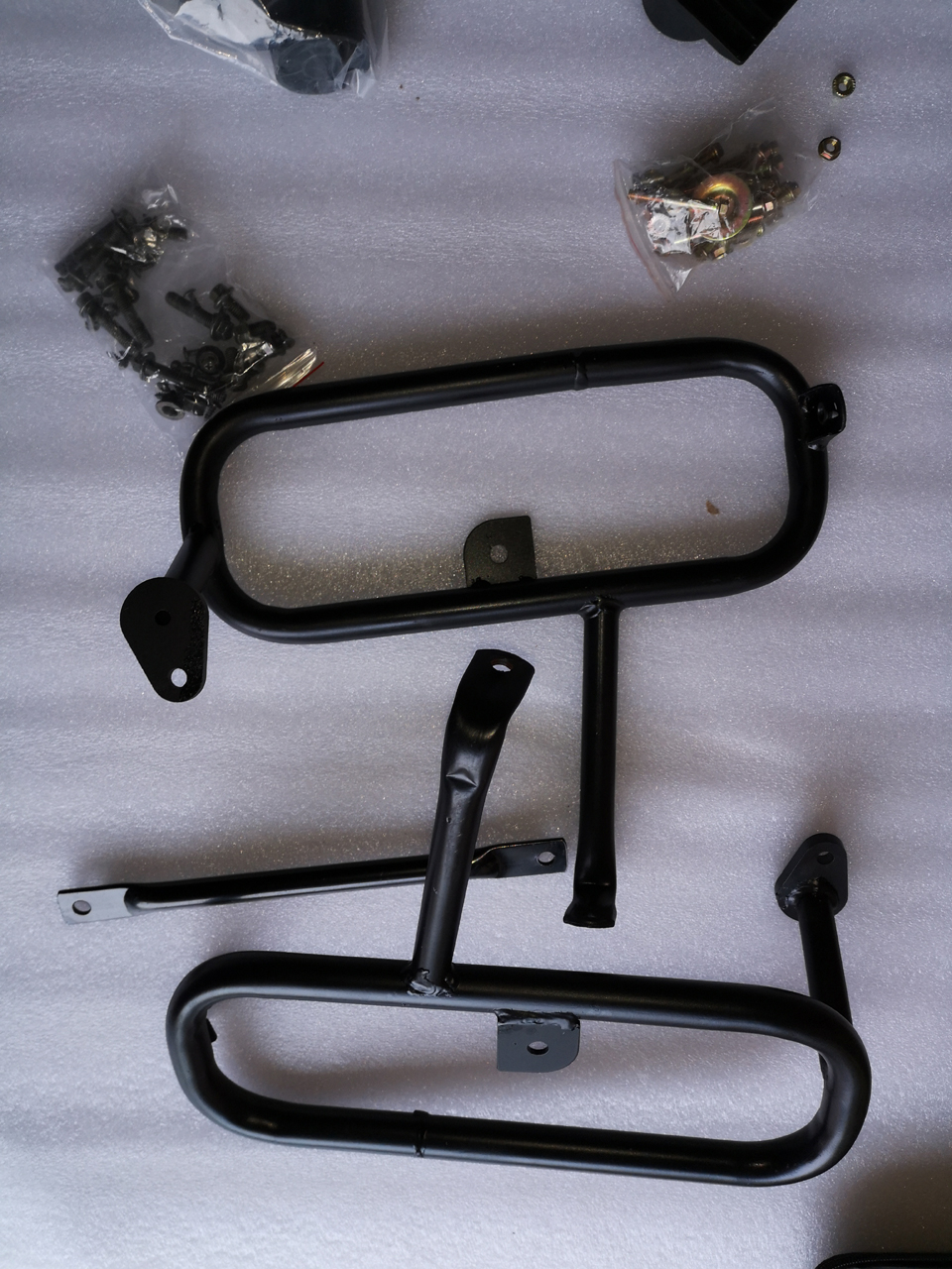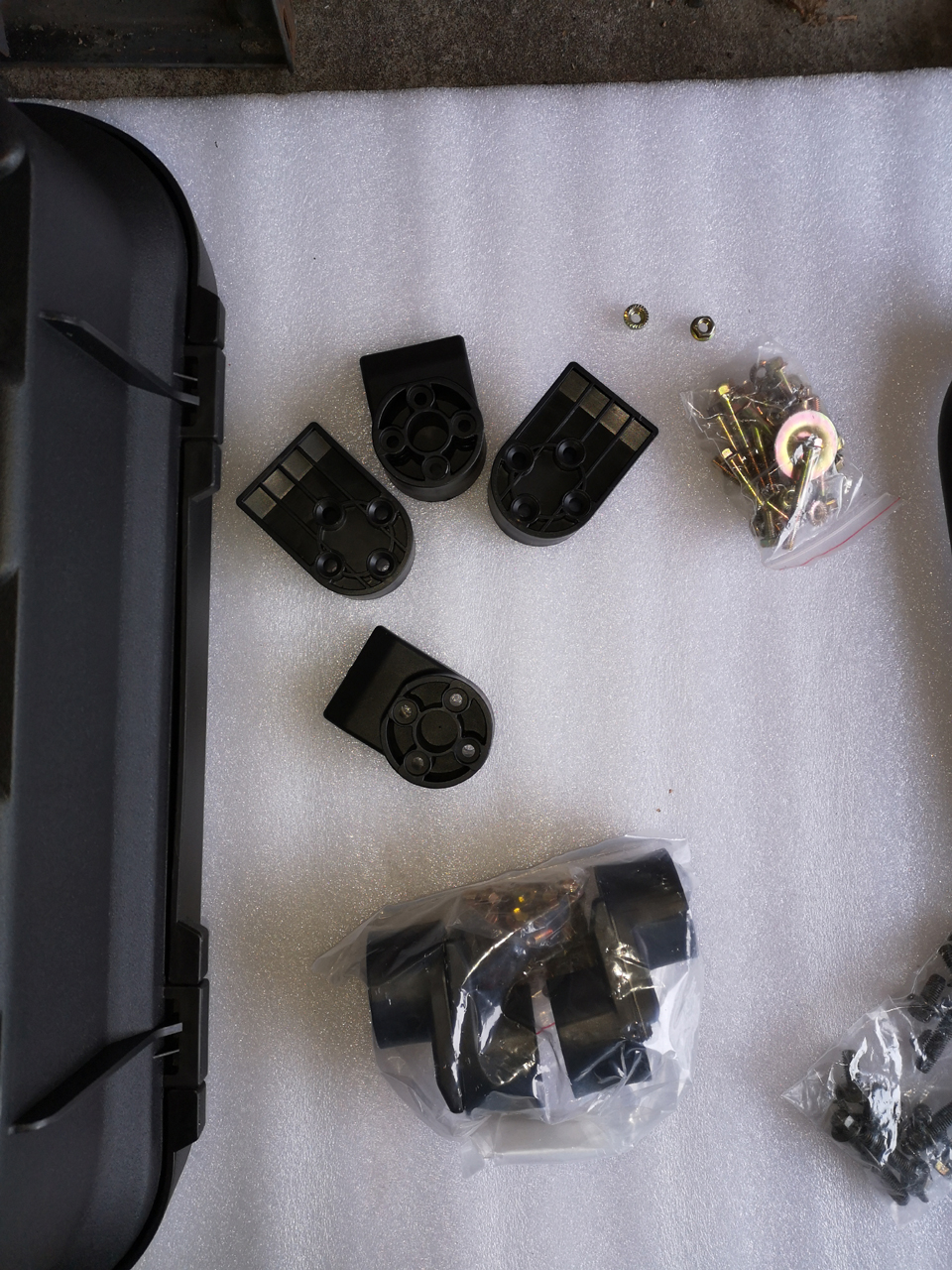 Insbesondere wäre die Frage zu klären, wie die Koffer mit den 4 Plastikteilen genau am geschwungenen Montagebügel fixiert werden sollen?
