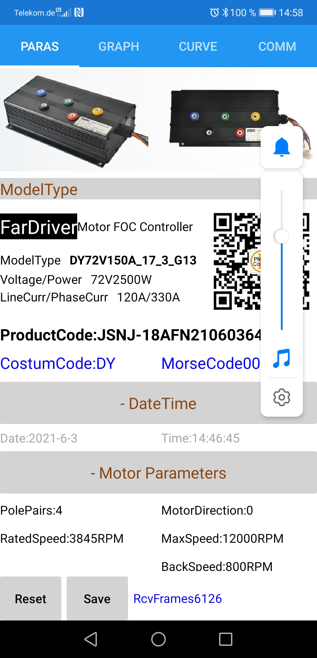 Zeigt bei Dir die Programmier-Software für den Nanjing-Controller auch "4 PolePairs" an, statt 16 (Nachtrag: wohl eher 24).... und folgerichtig überall die um den Faktor 4 (ws. 6) zu hohen RPMs?
