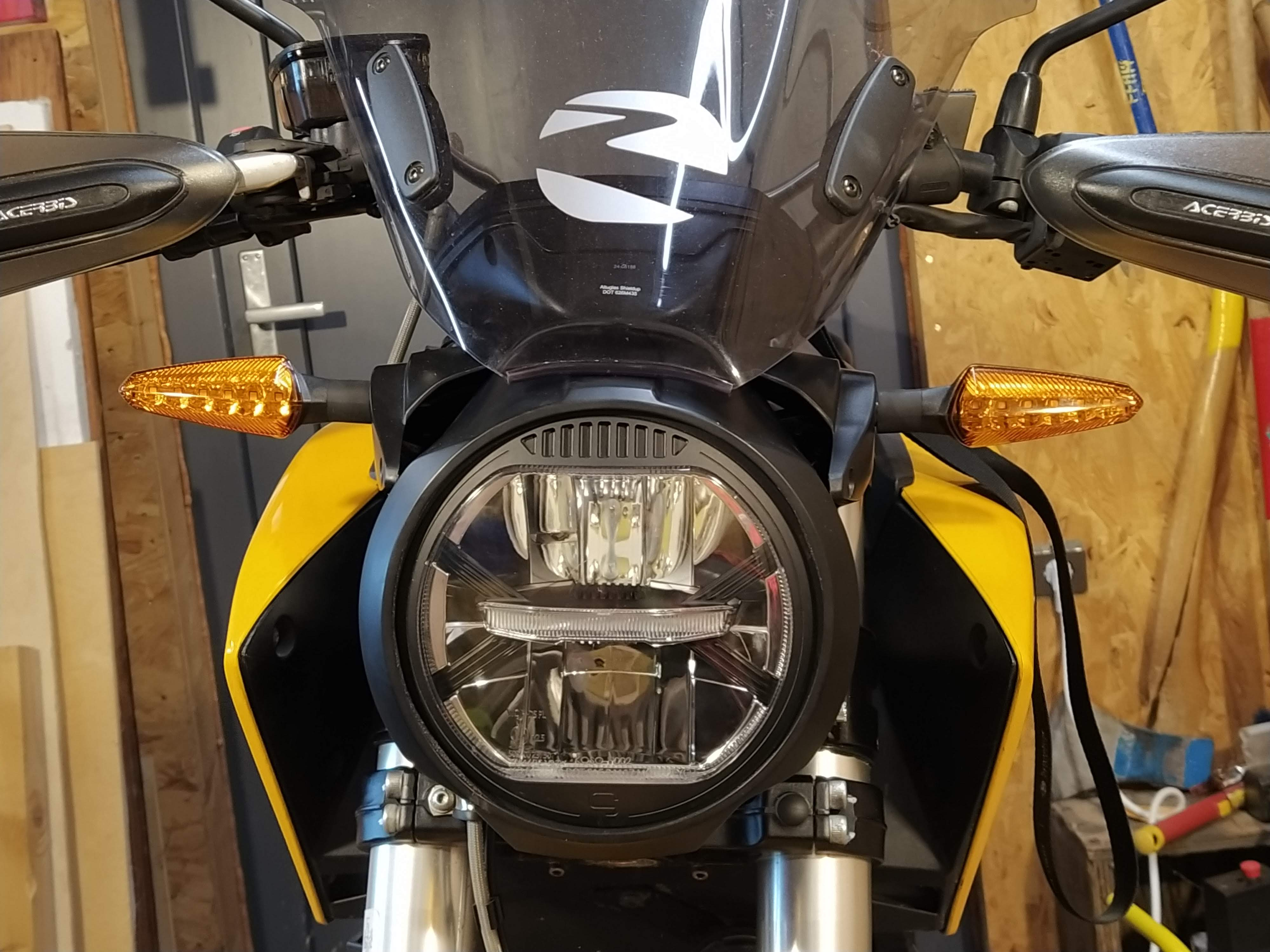 Was mich schon stutzig gemacht hat, ist dass bei den Scheinwerfern nur E Nummern zu finden sind und keine Warnungen "nicht im Straßenverkehr zugelassen" oder eine ABE für verschiedene Motorräder.